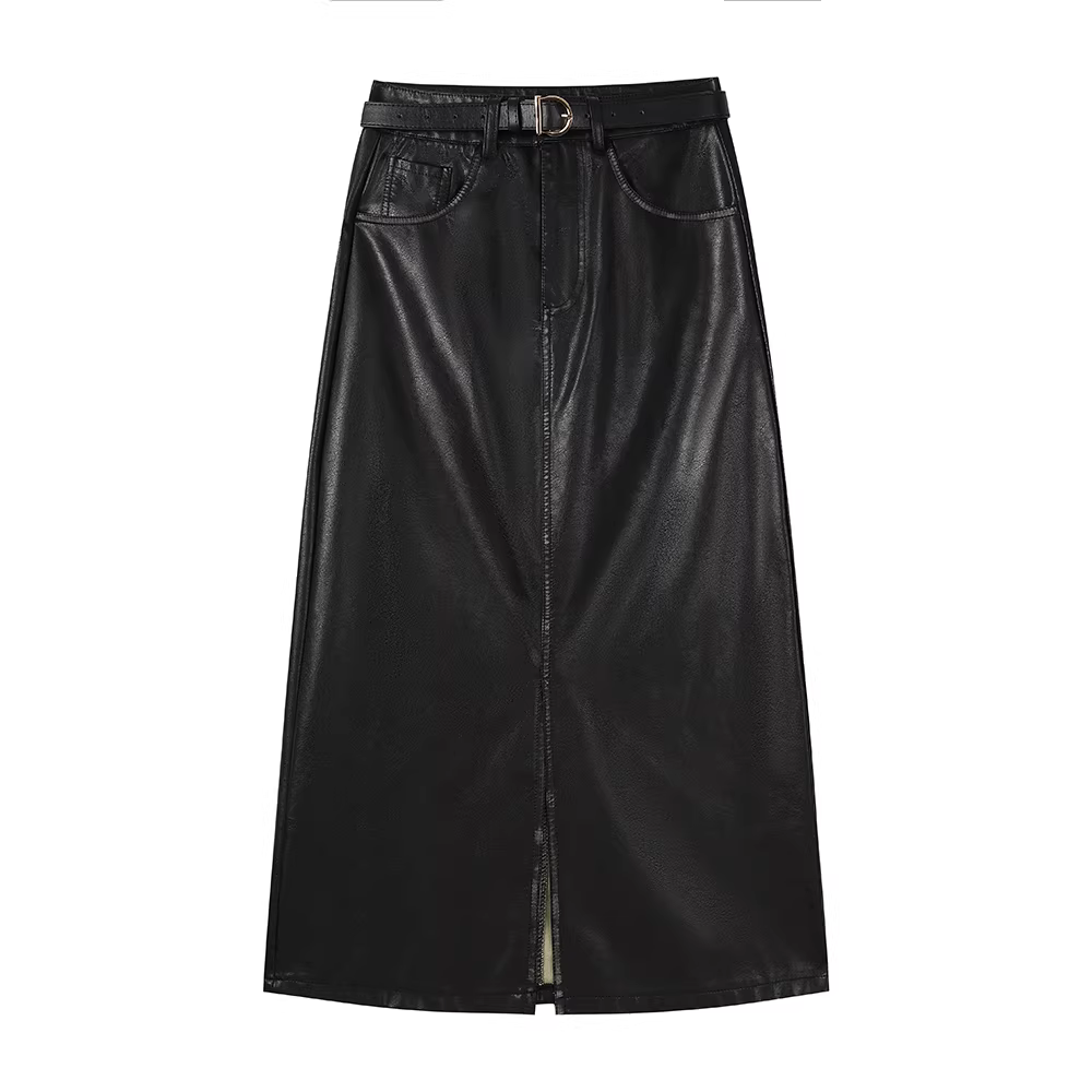 Váy da nâu kiểu Melard cổ điển dài vừa phải, váy bút chì chữ A kiểu Mỹ mới mùa thu đông dành cho nữ.
