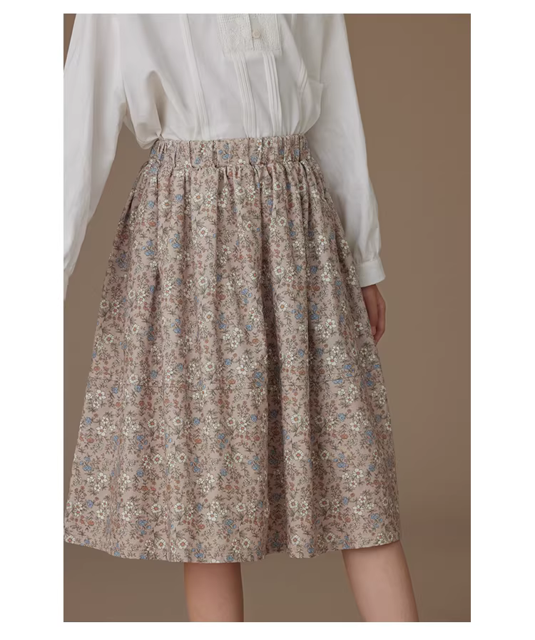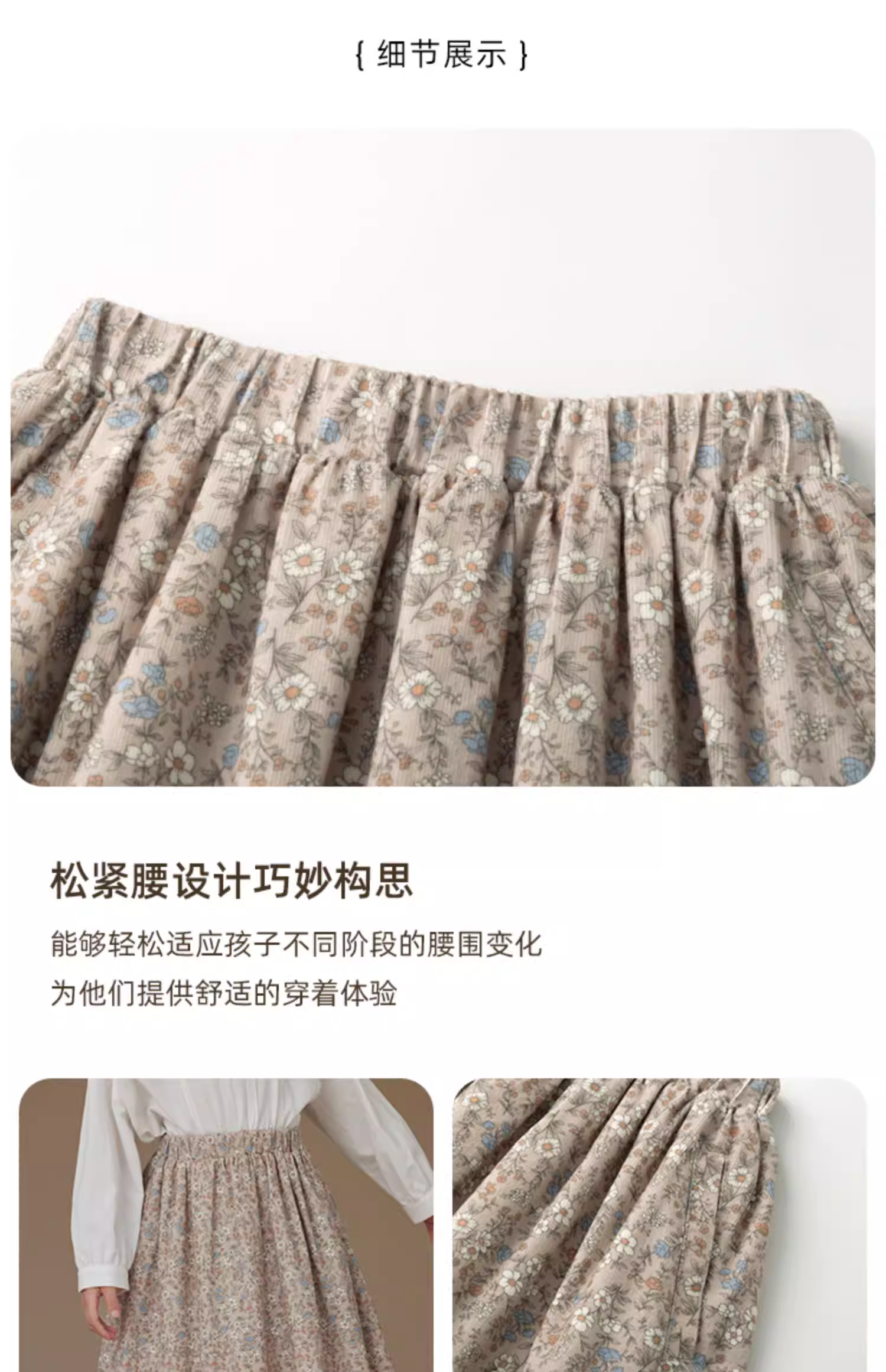 Váy dài họa tiết hoa cho trẻ em mùa xuân thu, váy dáng rộng, váy chữ A cho bé gái lớn, váy nửa thân cho bé gái.
