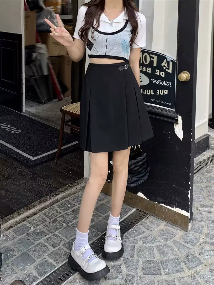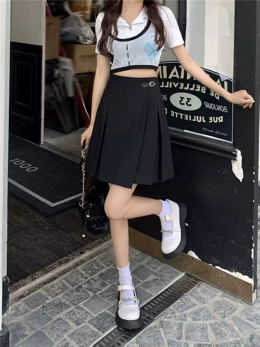 Váy dáng bất quy tắc cỡ lớn với thiết kế eo cao, váy chữ A độc đáo, váy xếp ly tôn dáng cho nữ, váy dài trung bình.