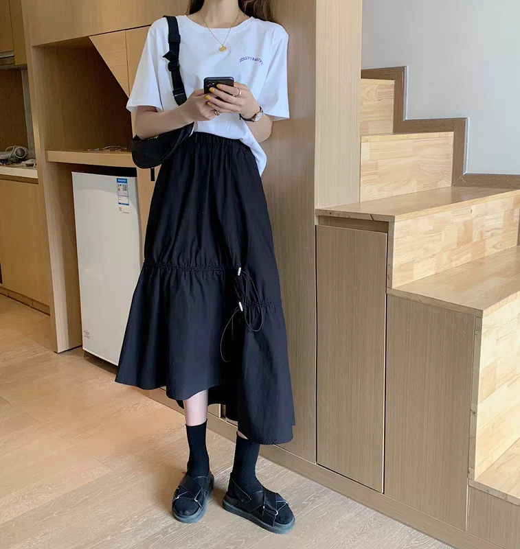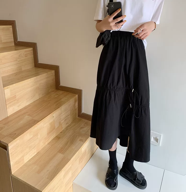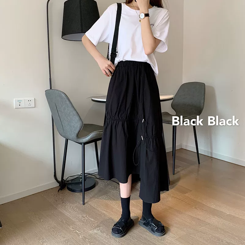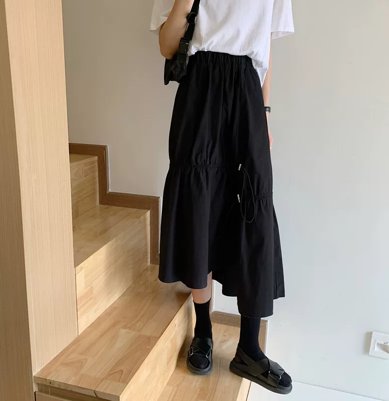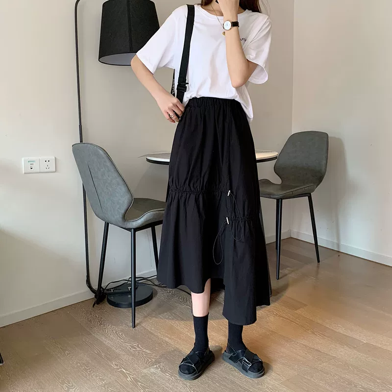 - Váy dây rút lưng cao không đều kiểu dáng plus-size che bụng, váy chữ A dáng rộng mùa hè giúp thon gọn, váy quần thời trang dành cho nữ.