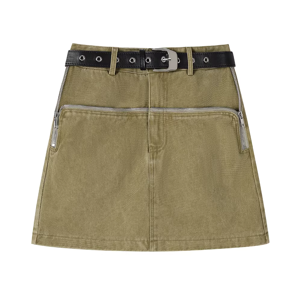 Váy denim dáng chữ A thiết kế cổ điển của Mỹ dành cho nữ, váy mini ôm sát eo cao phong cách niche mùa xuân thu
