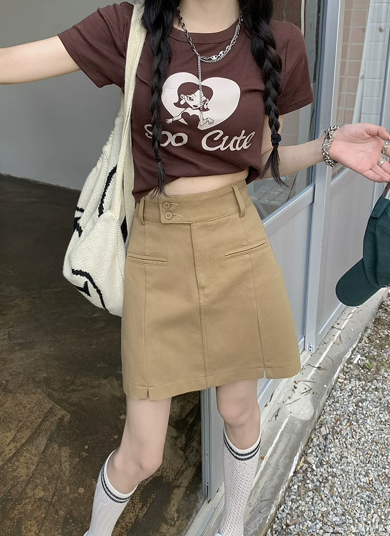 - Váy denim xẻ tà cỡ lớn dành cho nữ, mùa thu, tôn dáng, ôm hông, phong cách Hàn Quốc, váy ngắn chữ A lưng cao.