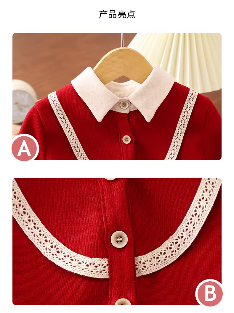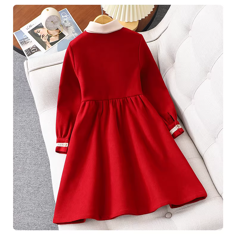 - Váy đỏ bé gái mùa đông 2025 kiểu mới lót lông cừu váy Giáng sinh váy Tết bé gái váy công chúa trẻ em