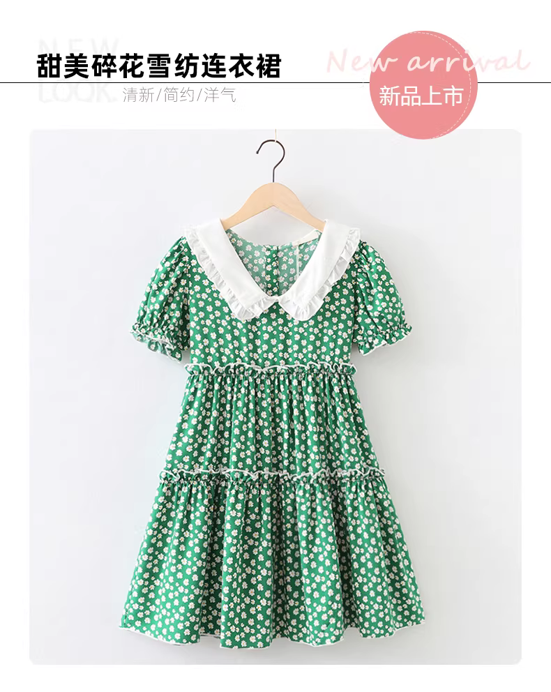 - Váy hoa bé gái hè 2025 tay ngắn, váy công chúa phong cách preppy, váy hè thời trang cho bé lớn