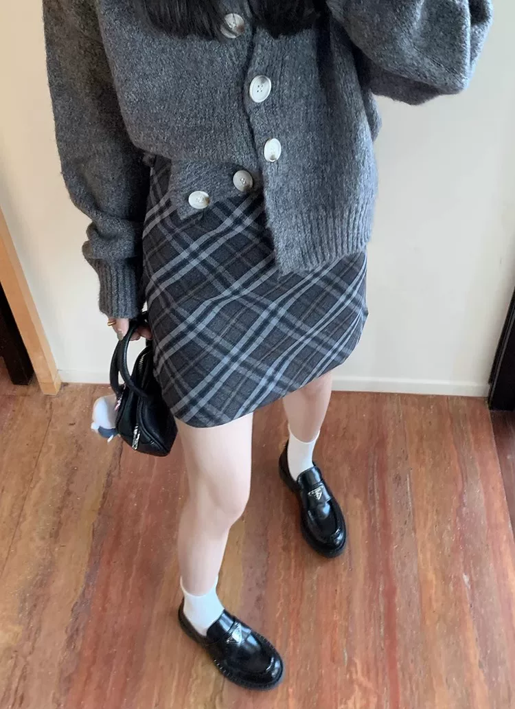 - Váy kẻ sọc đen len kiểu Mỹ cổ điển dành cho nữ mùa thu đông, váy chữ A nhỏ có kẻ sọc, lưng cao và ôm sát hông