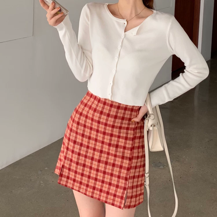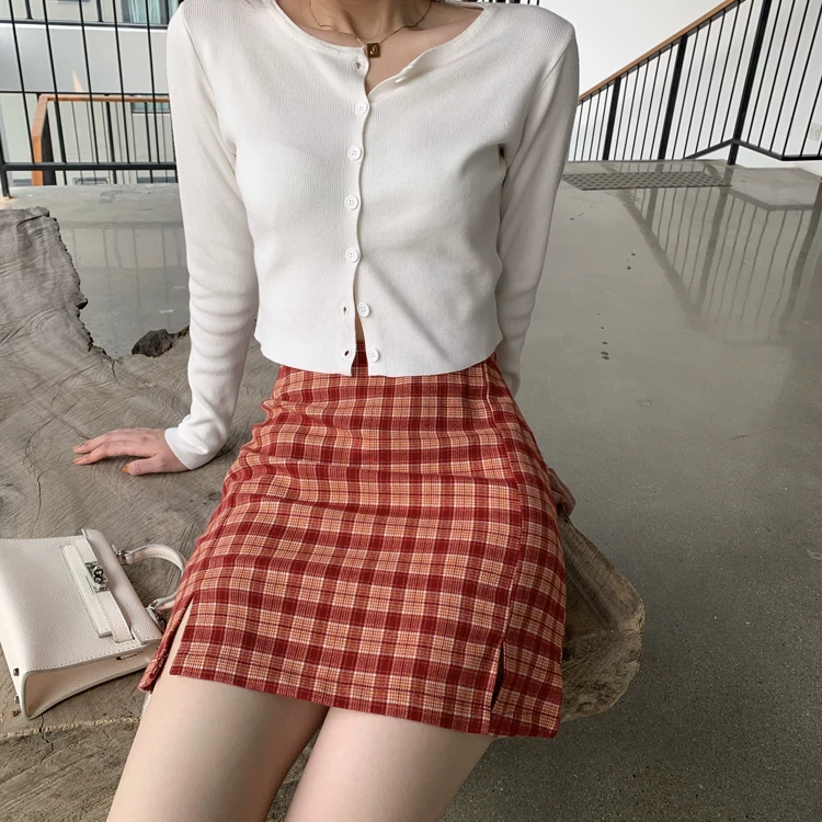 - Váy kẻ sọc đỏ cạp cao kiểu retro cỡ lớn dành cho nữ trong mùa hè, váy bút chì dáng chữ A xẻ tà kép tôn dáng dành cho phụ nữ có đường cong.