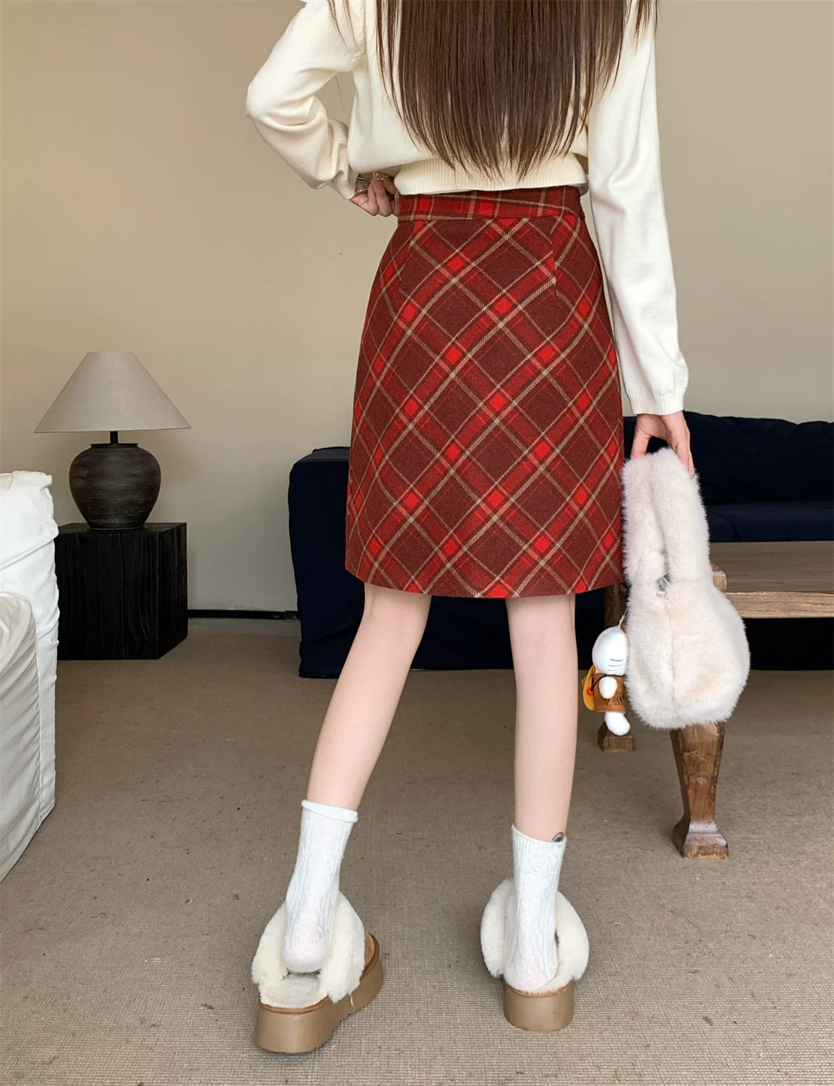 复古格子半身裙,穿出不一样的风格