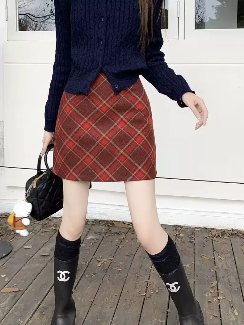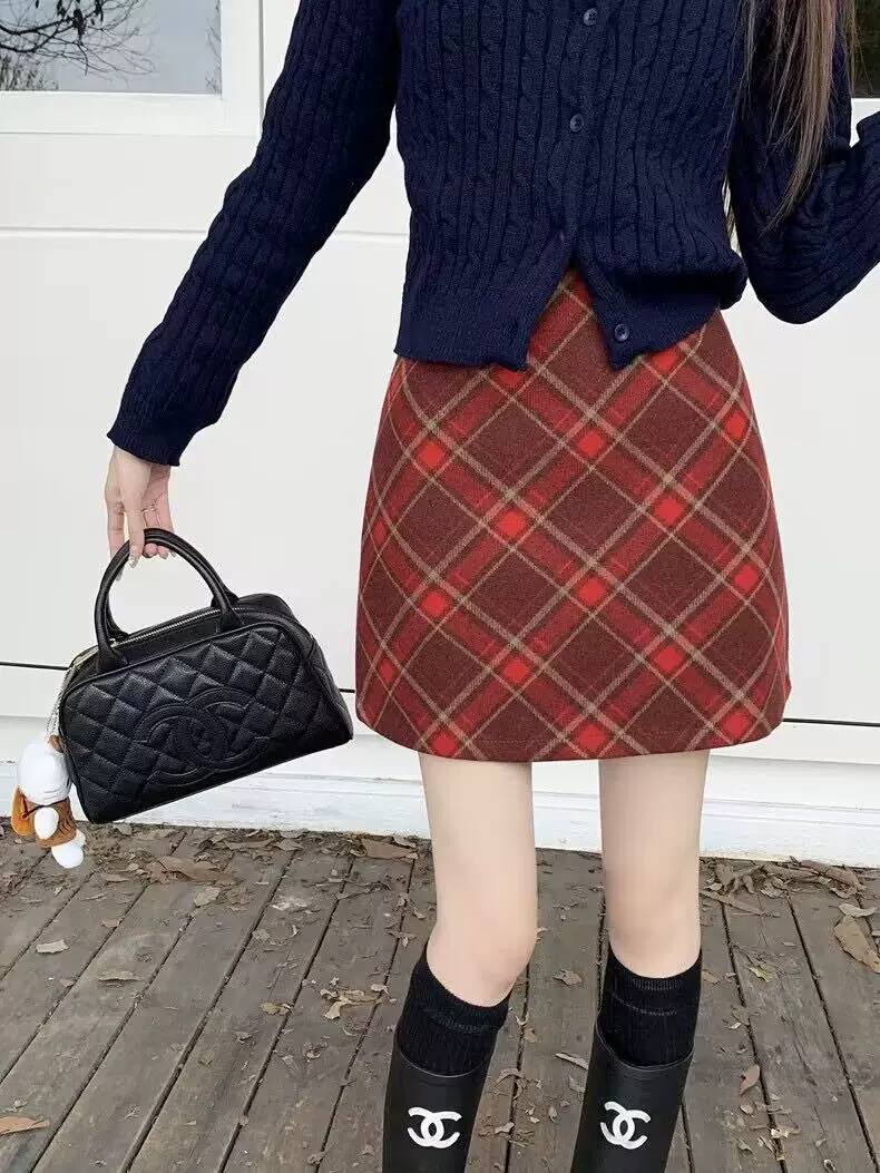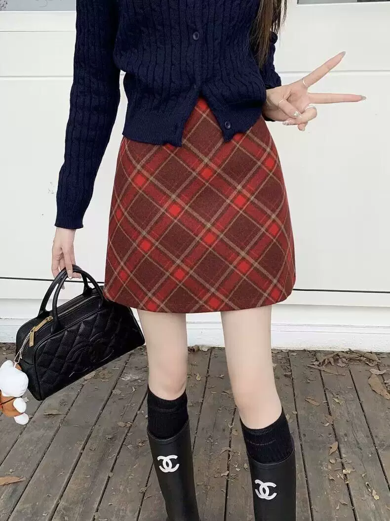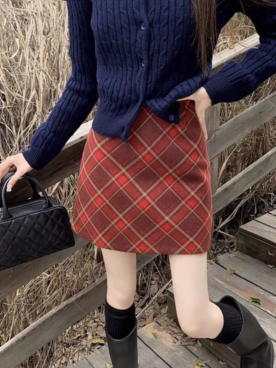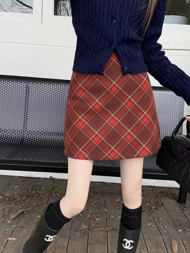 - Váy kẻ sọc đỏ cổ điển kiểu Mỹ dành cho nữ, size lớn, gợi cảm, cạp cao, ôm hông, kiểu dáng một bước, tôn dáng, váy ngắn chữ A