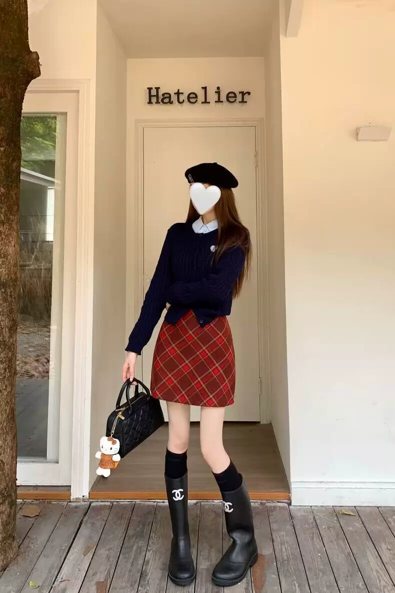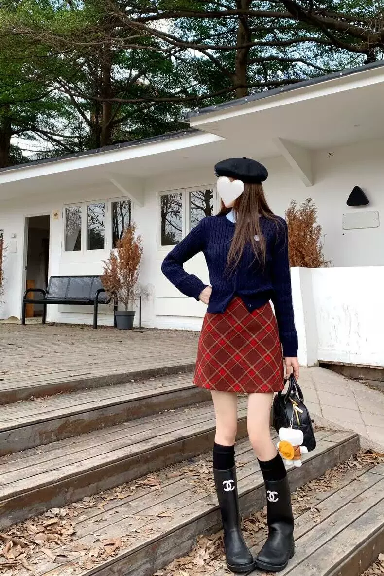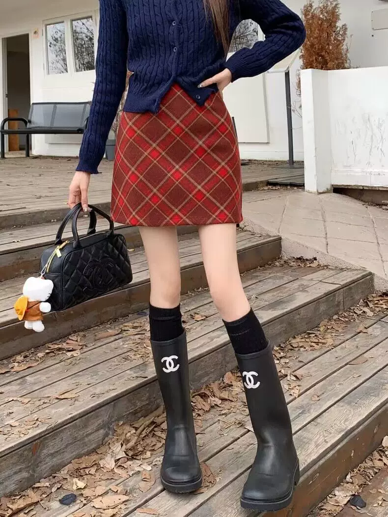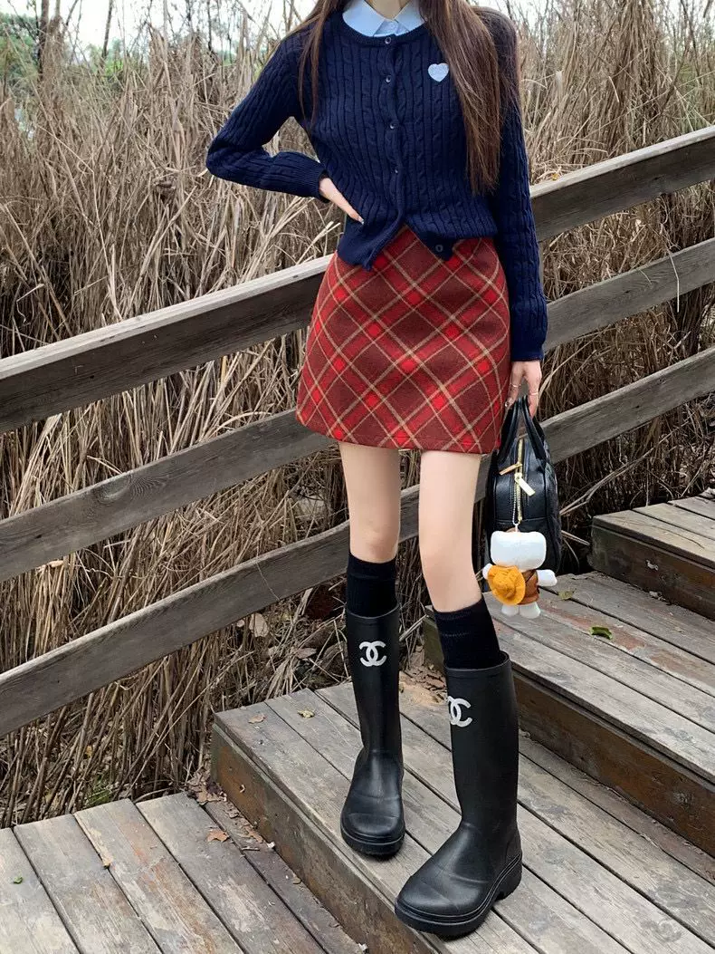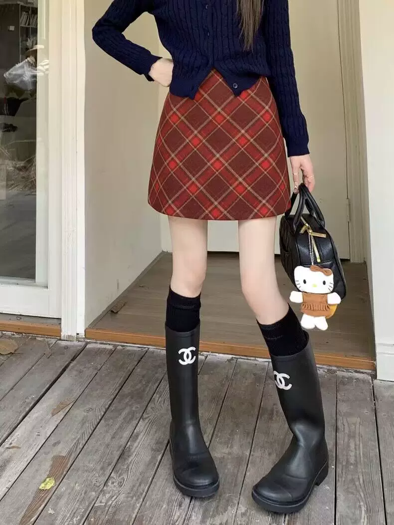 - Váy kẻ sọc đỏ cổ điển kiểu Mỹ dành cho nữ, size lớn, gợi cảm, cạp cao, ôm hông, kiểu dáng một bước, tôn dáng, váy ngắn chữ A