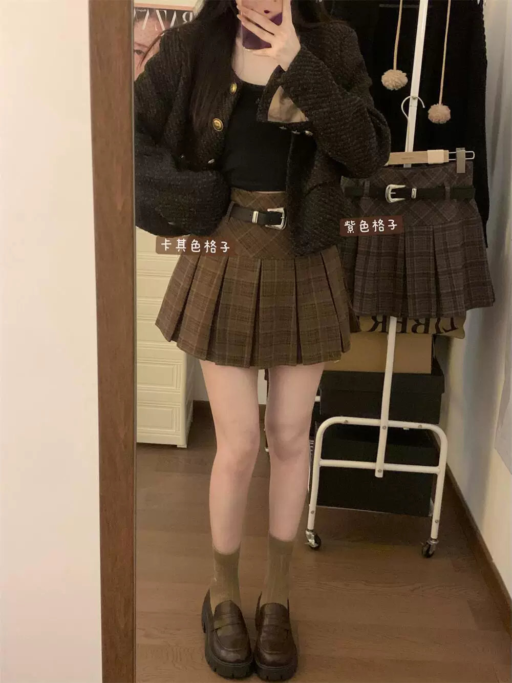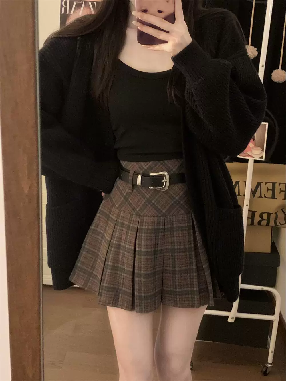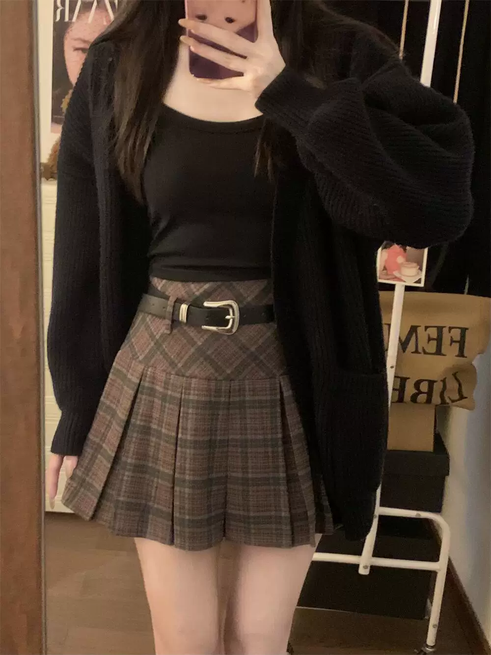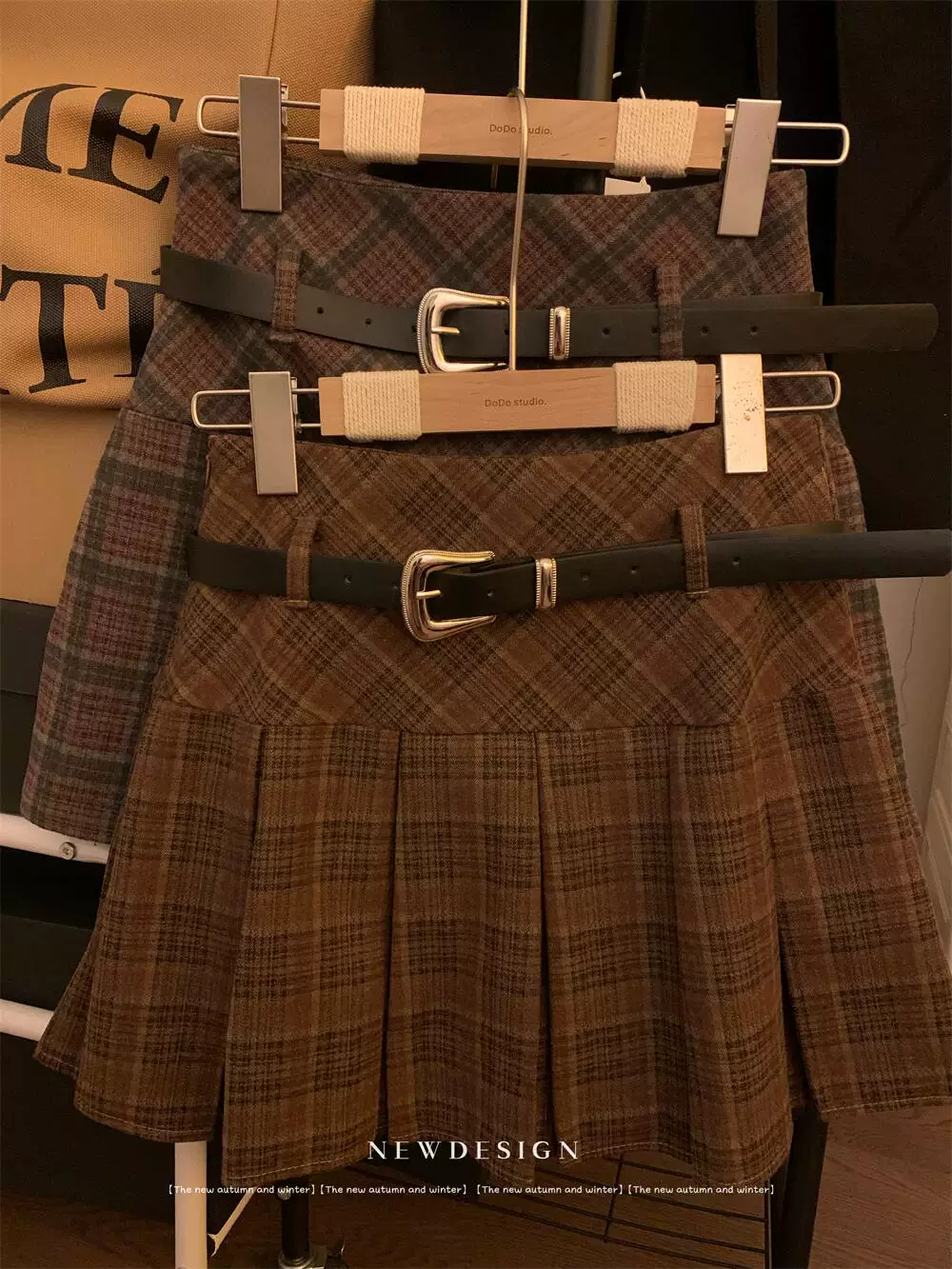 - Váy kẻ sọc len cỡ lớn dành cho nữ, thiết kế thu đông, váy chữ A ôm hông, váy xếp ly chống lộ dành cho phụ nữ cỡ lớn, váy ngắn.