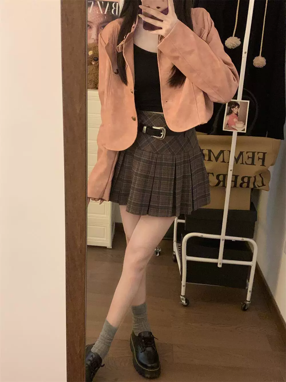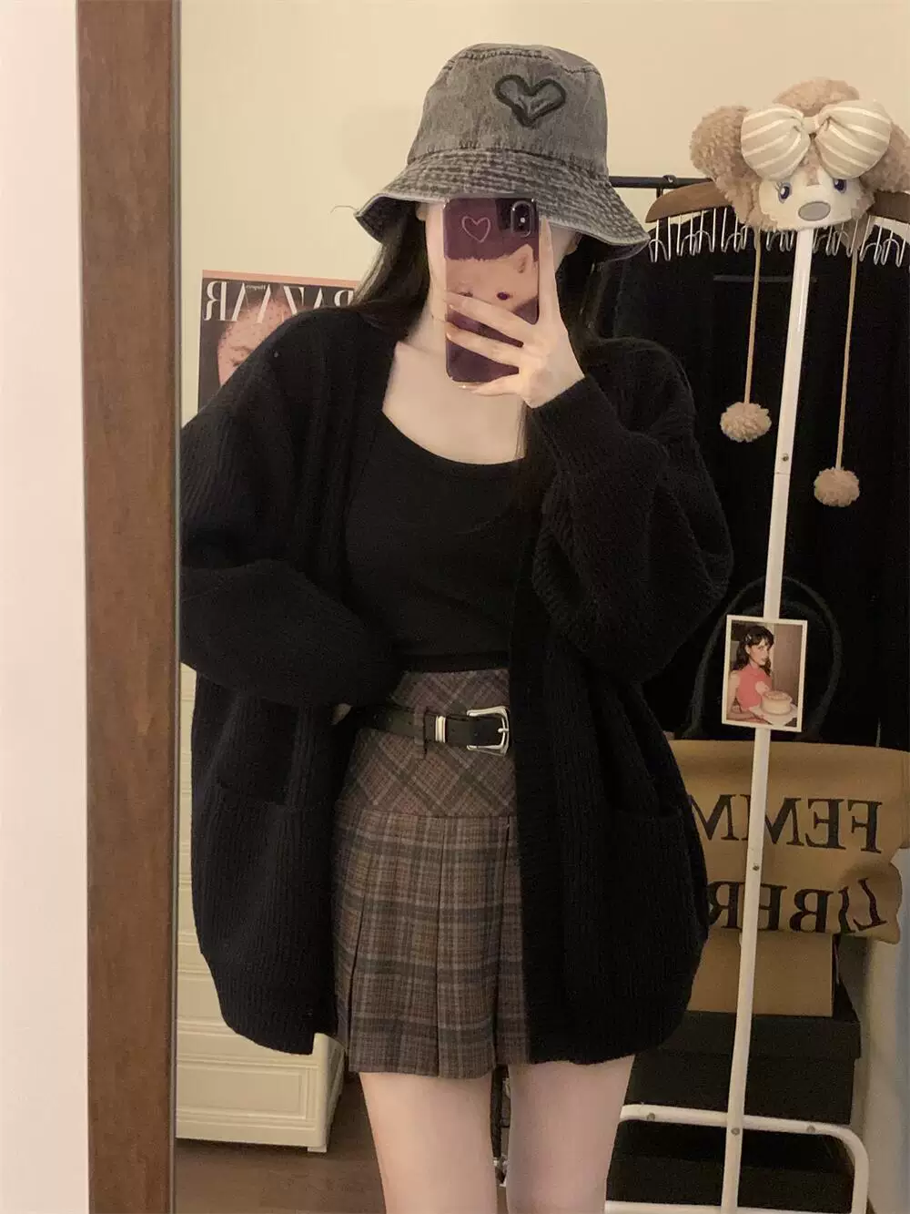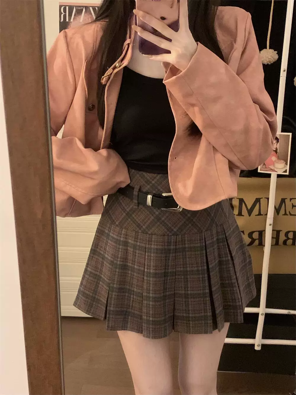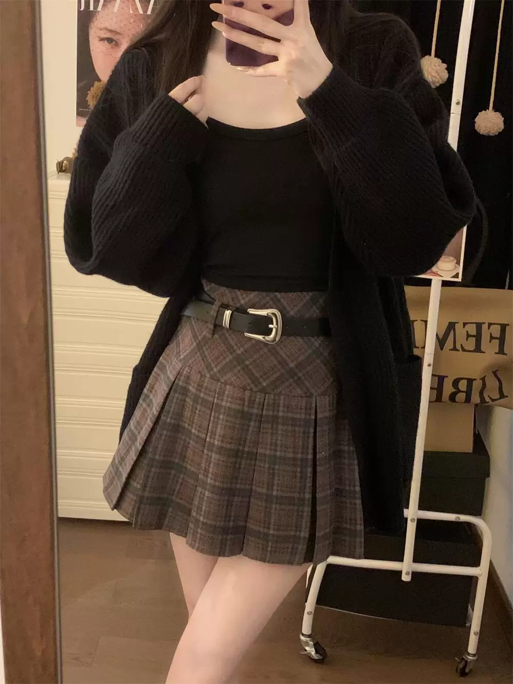 - Váy kẻ sọc len cỡ lớn dành cho nữ, thiết kế thu đông, váy chữ A ôm hông, váy xếp ly chống lộ dành cho phụ nữ cỡ lớn, váy ngắn.