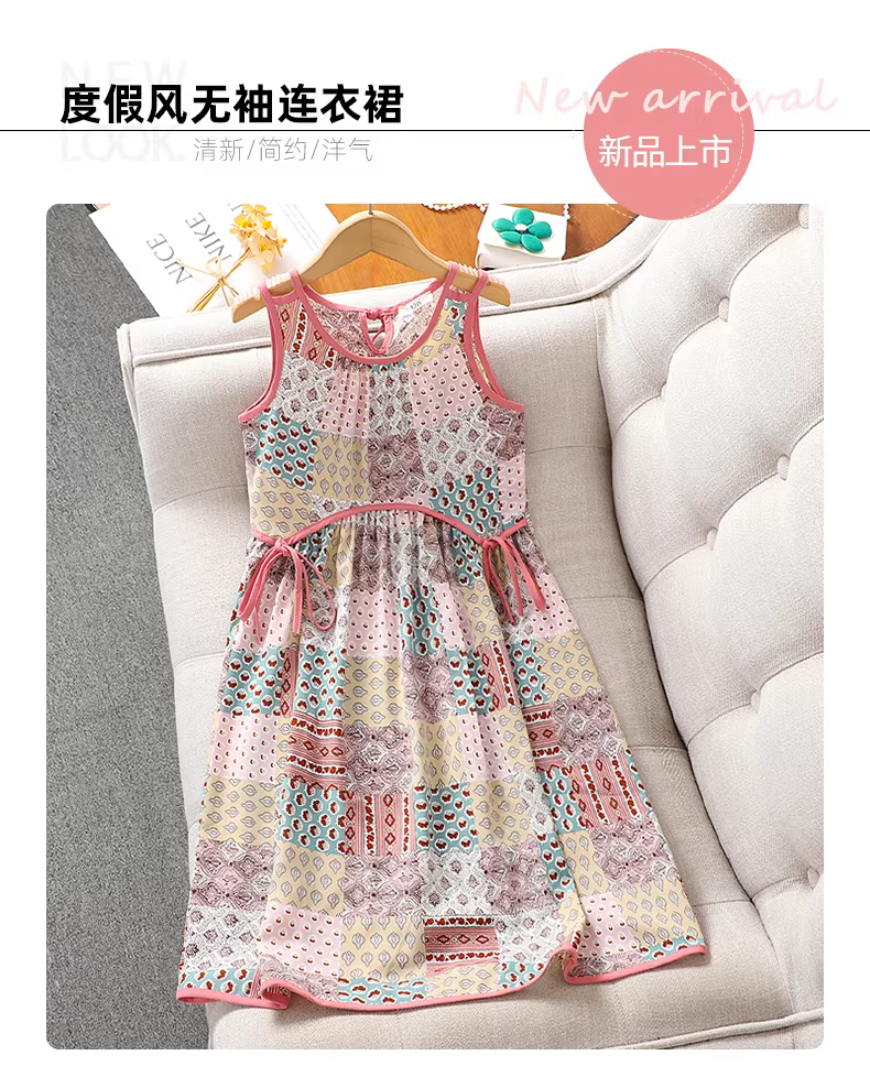 - Váy kiểu dáng mùa hè cho bé gái năm 2025, váy liền thân thoáng mát họa tiết hoa cho bé gái lớn hơn