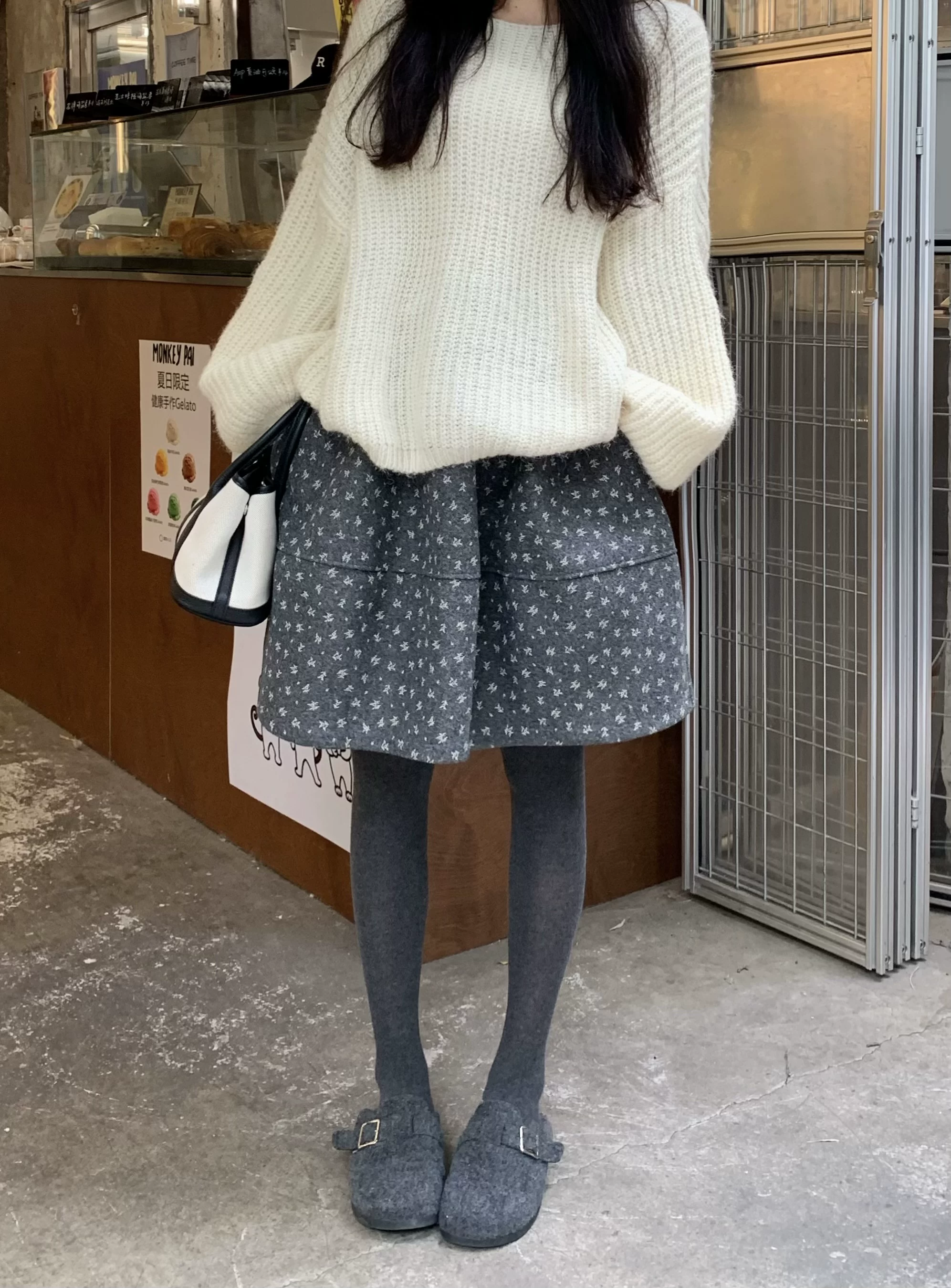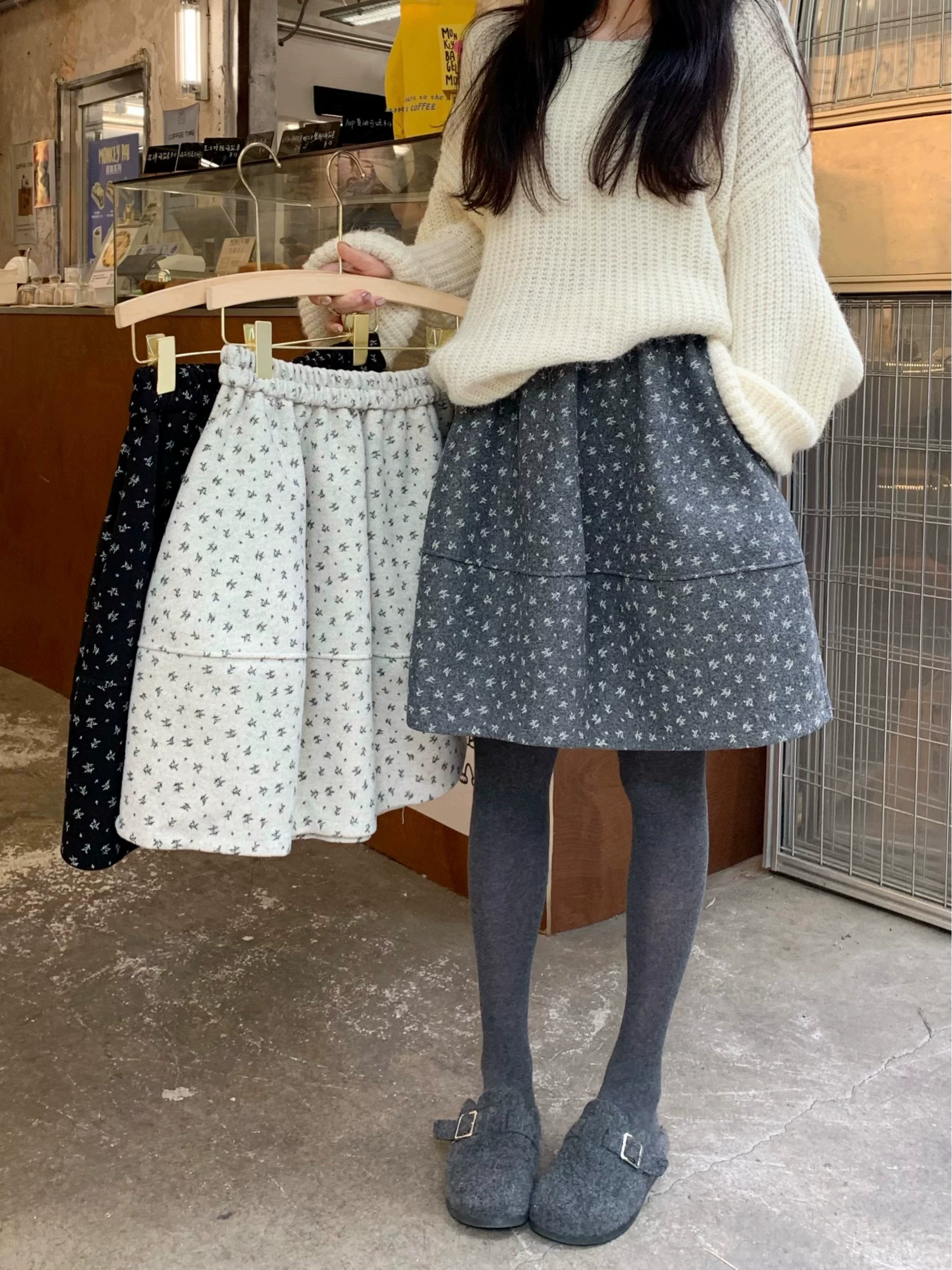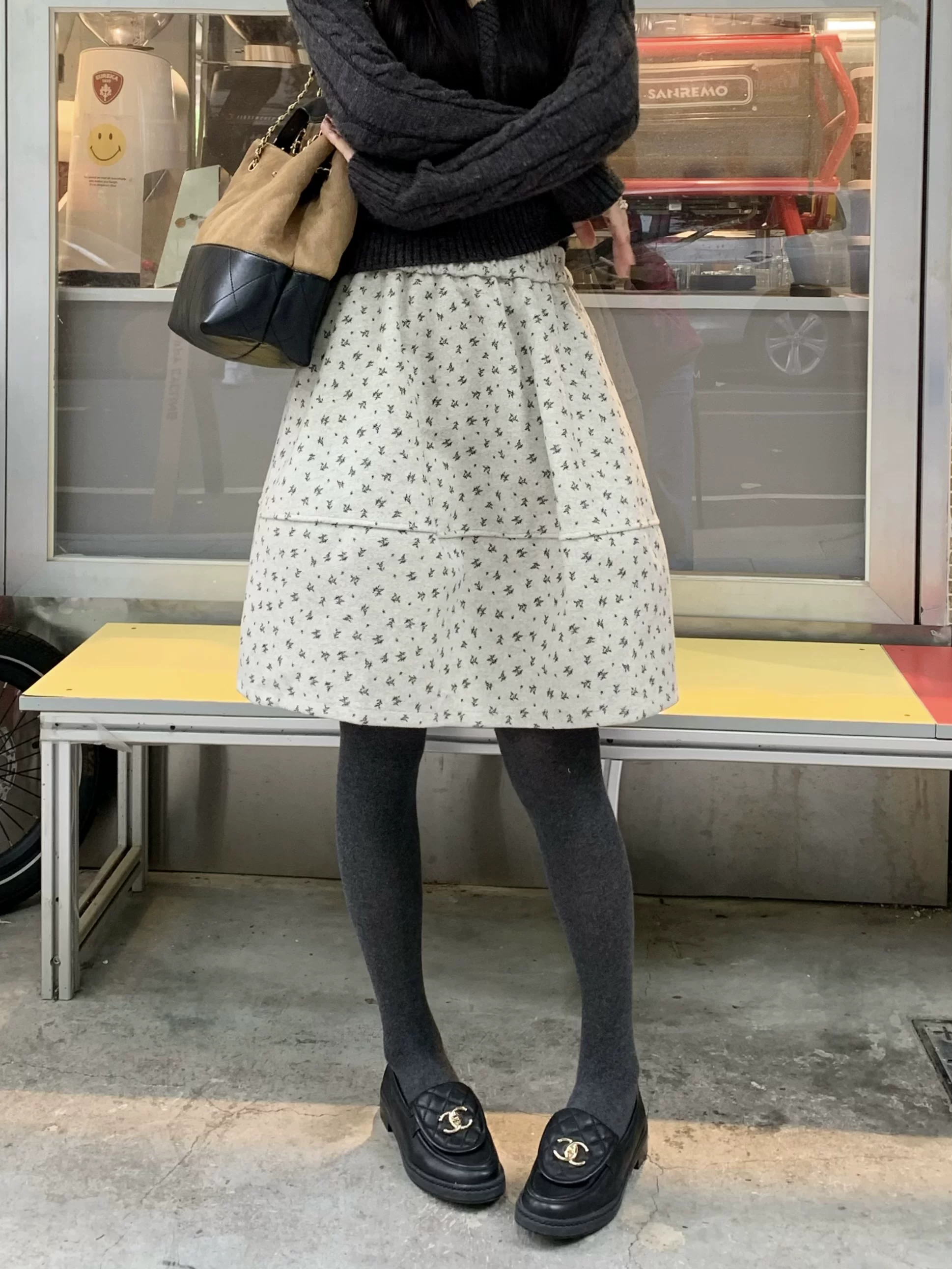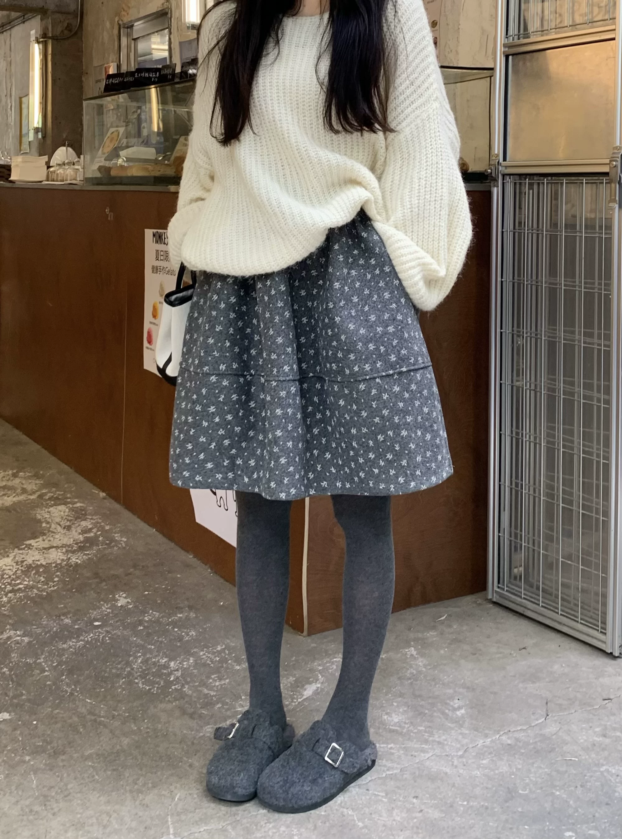 - Váy len hoa, cỡ lớn mùa thu đông, phong cách Miu, váy ngắn chữ A tôn dáng, váy dù dài ngang hông che hông, váy nụ hoa phồng.
