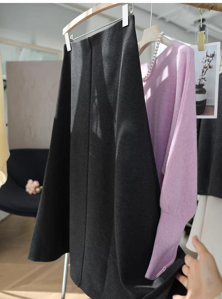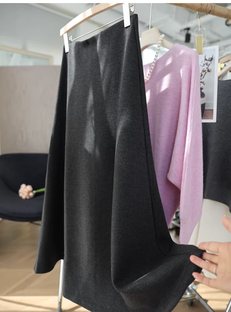 Váy len thanh lịch dày 600g, dày dặn và ấm áp, cạp cao, tôn dáng, váy chữ A dài trung bình dành cho nữ mùa thu đông