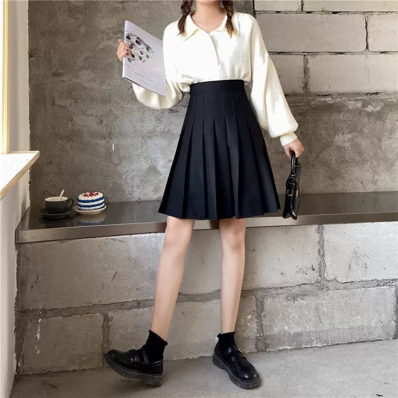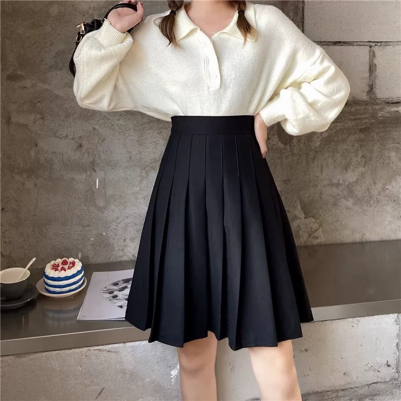 - Váy len xếp ly cỡ lớn dành cho nữ, váy midi thu đông, váy chữ A cạp cao tôn dáng, phong cách preppy, váy chống lộ cho các cô nàng mũm mĩm.