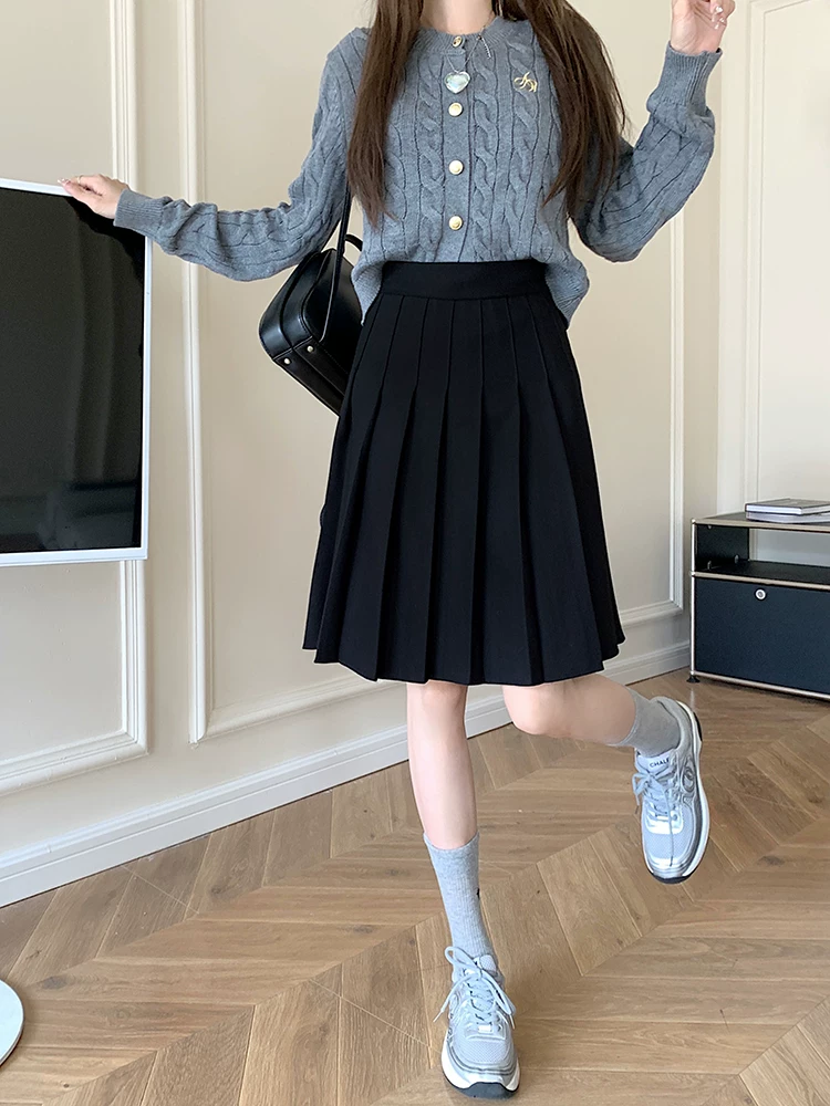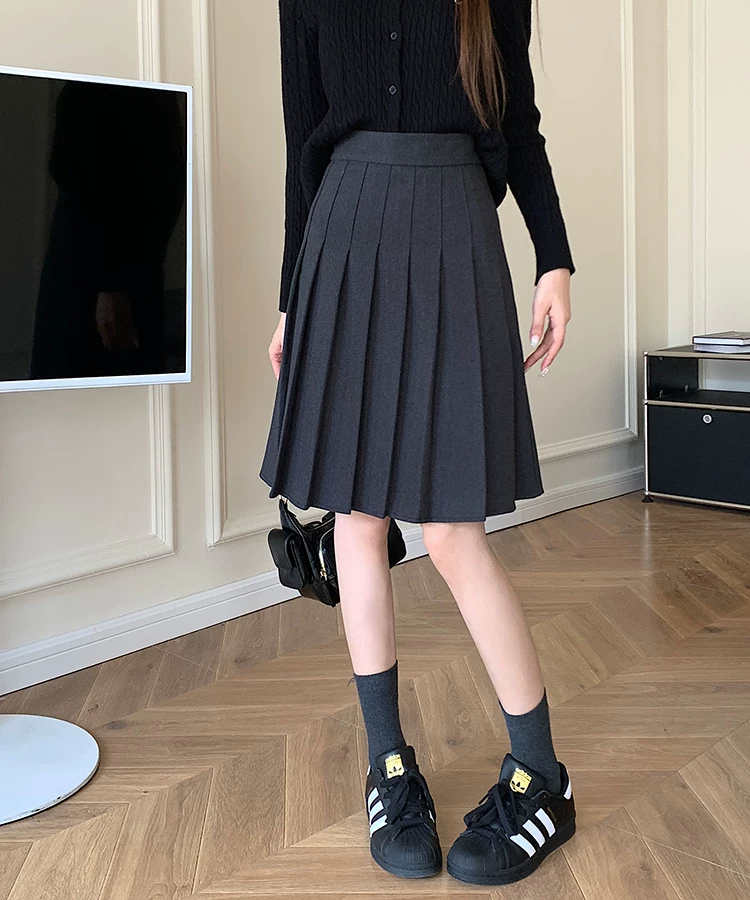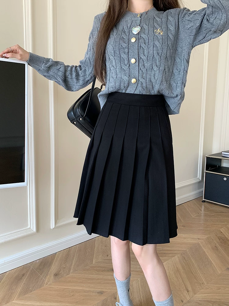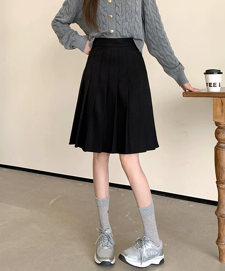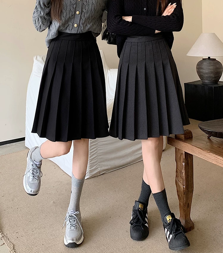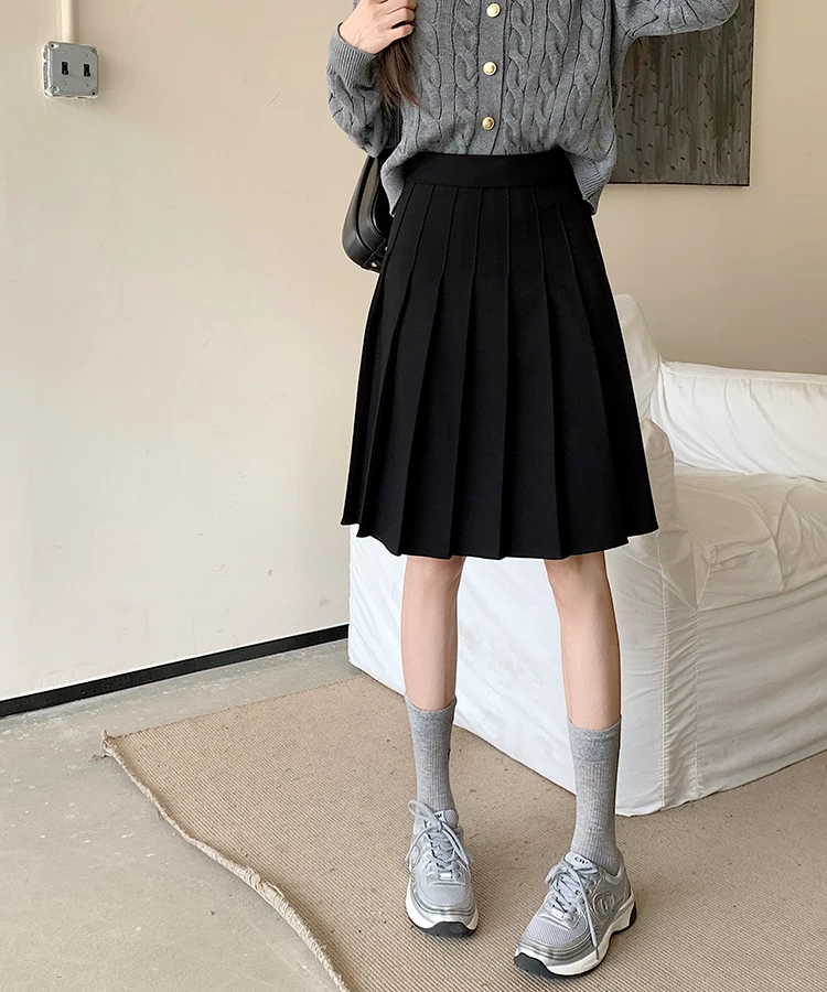 - Váy len xếp ly cỡ lớn, váy dài trung bình dành cho nữ, mùa thu đông, lưng cao, phong cách preppy, váy chữ A, váy ngắn thon gọn.
