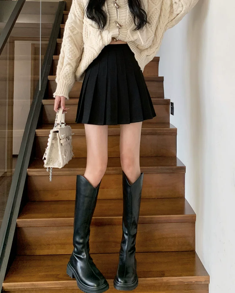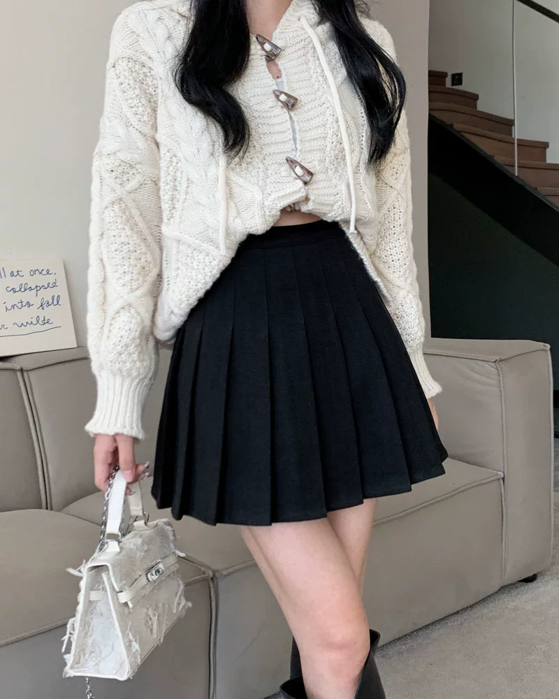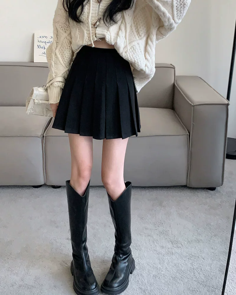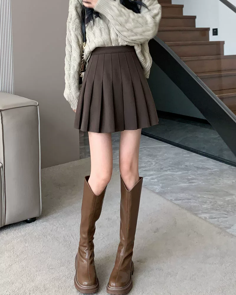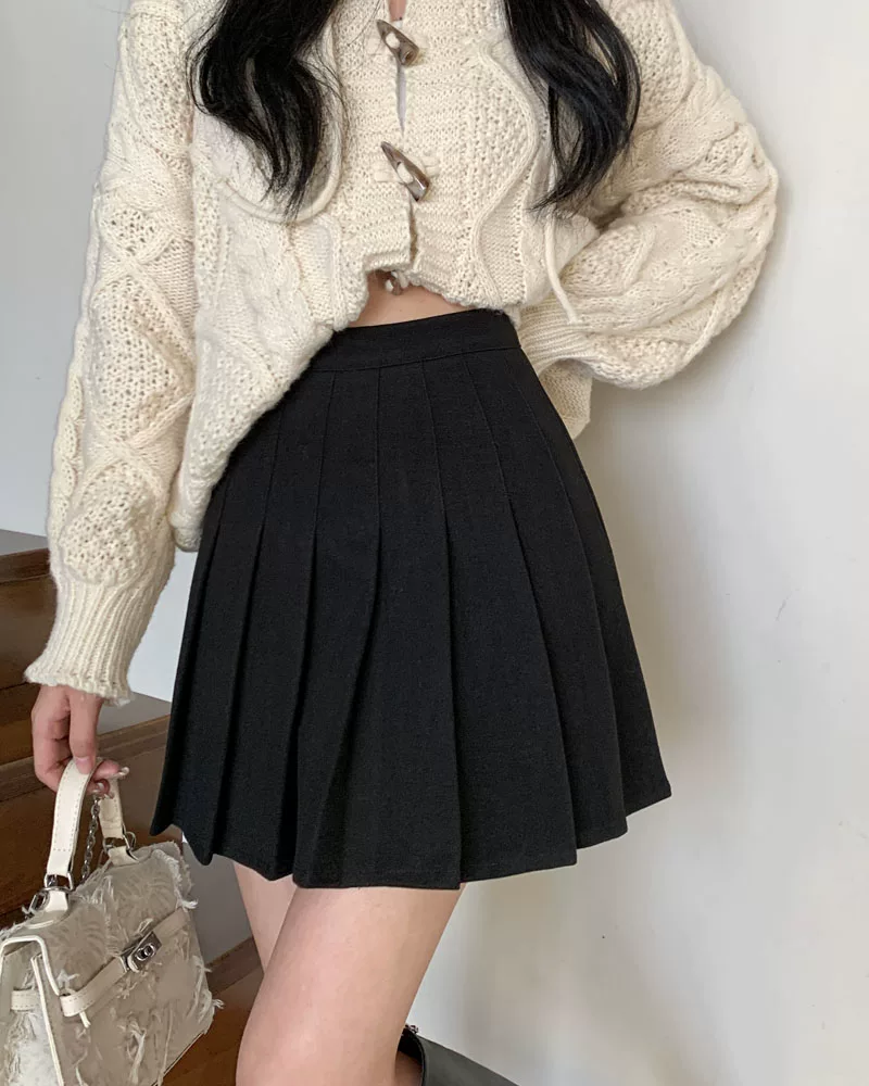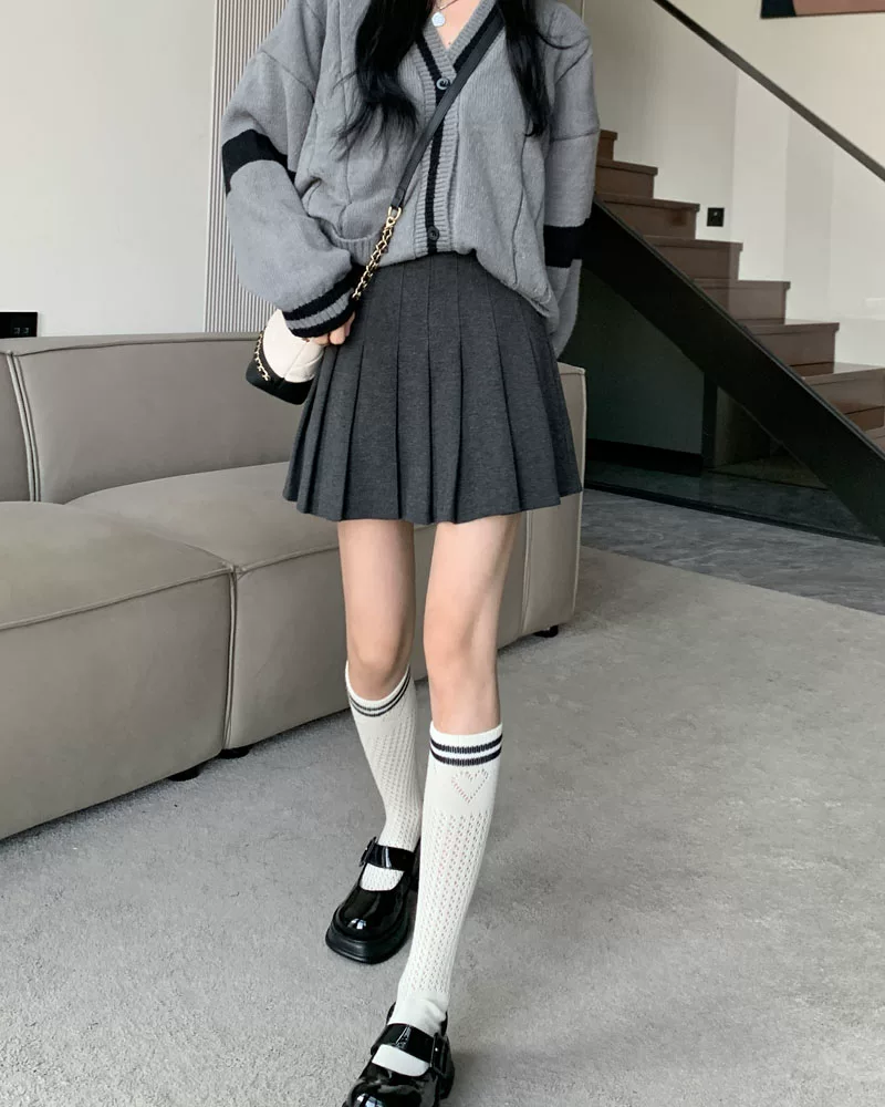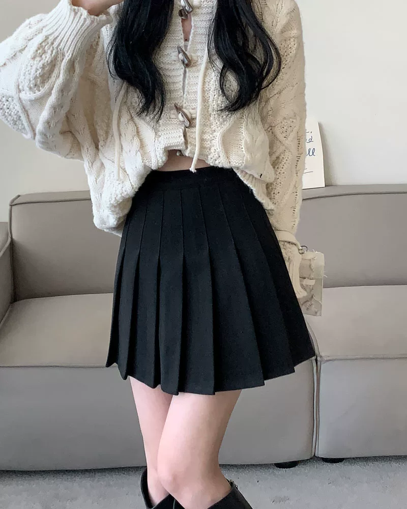 - Váy len xếp ly lưng cao màu xám, phong cách preppy thu đông dành cho nữ, phong cách Melard, váy chữ A thon gọn, váy ngắn.