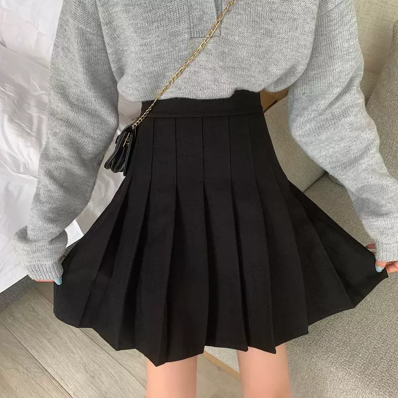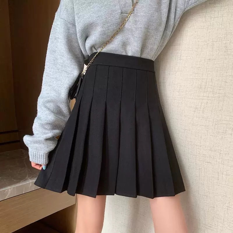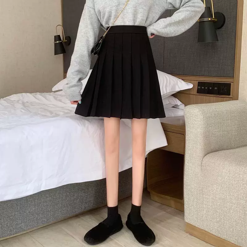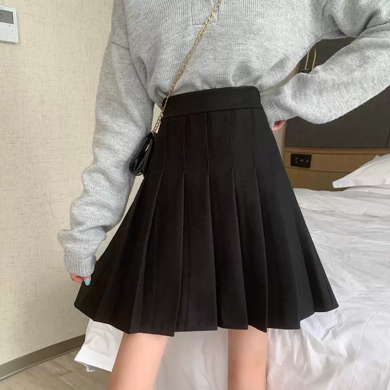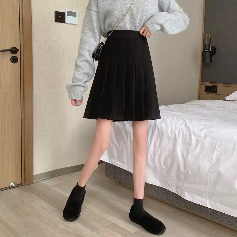 - Váy len xếp ly màu đen cỡ lớn, dài vừa phải, mùa thu đông 2021 dành cho nữ, váy lưng cao dành cho phụ nữ mũm mĩm, váy chữ A thon gọn.