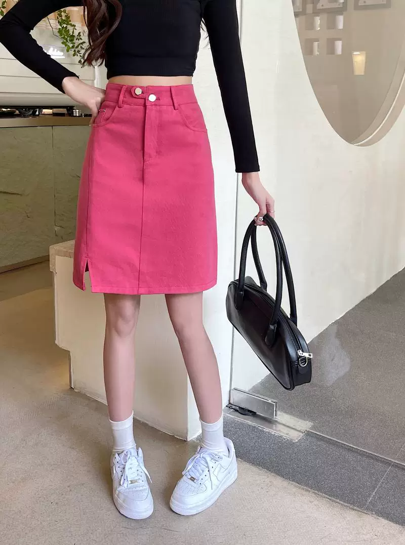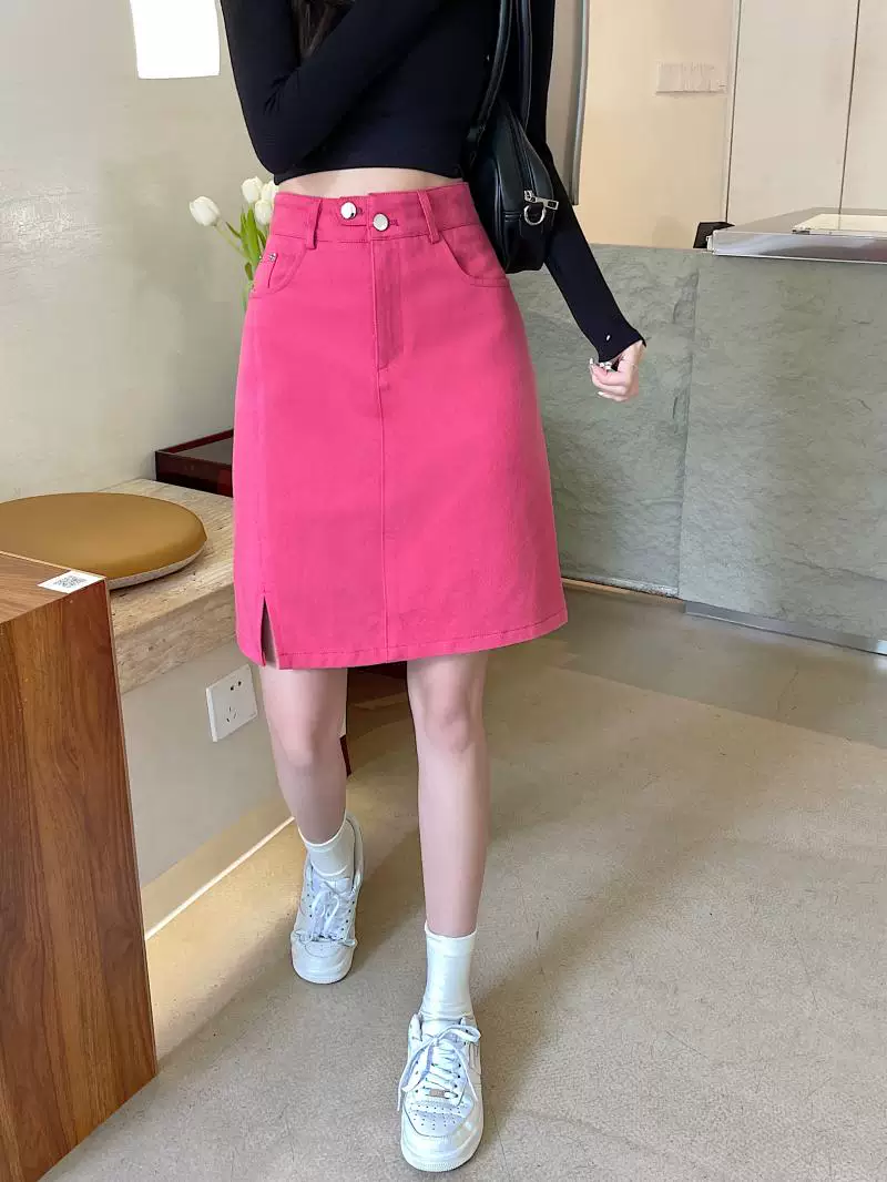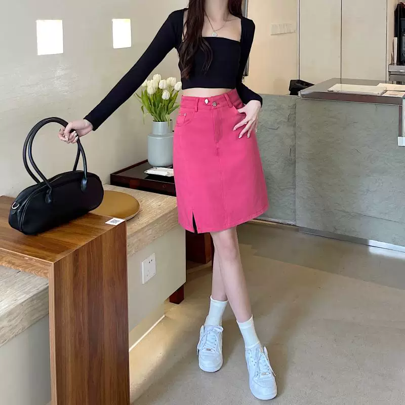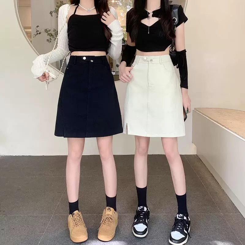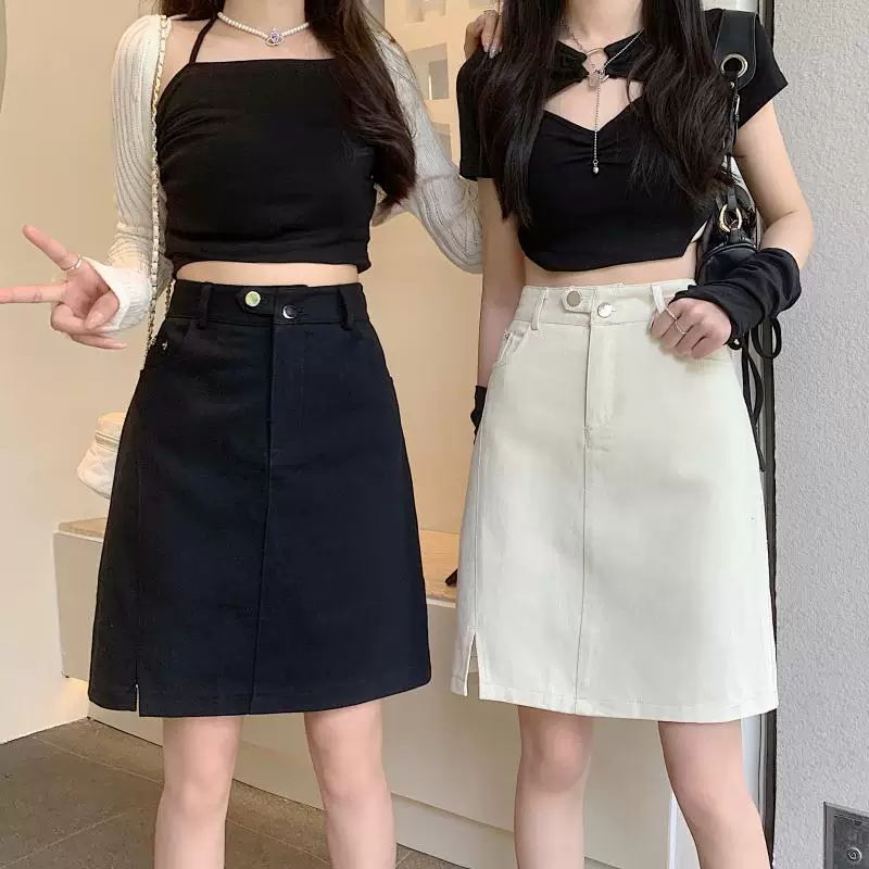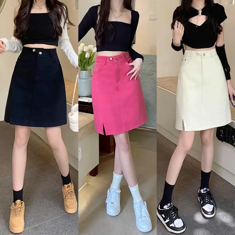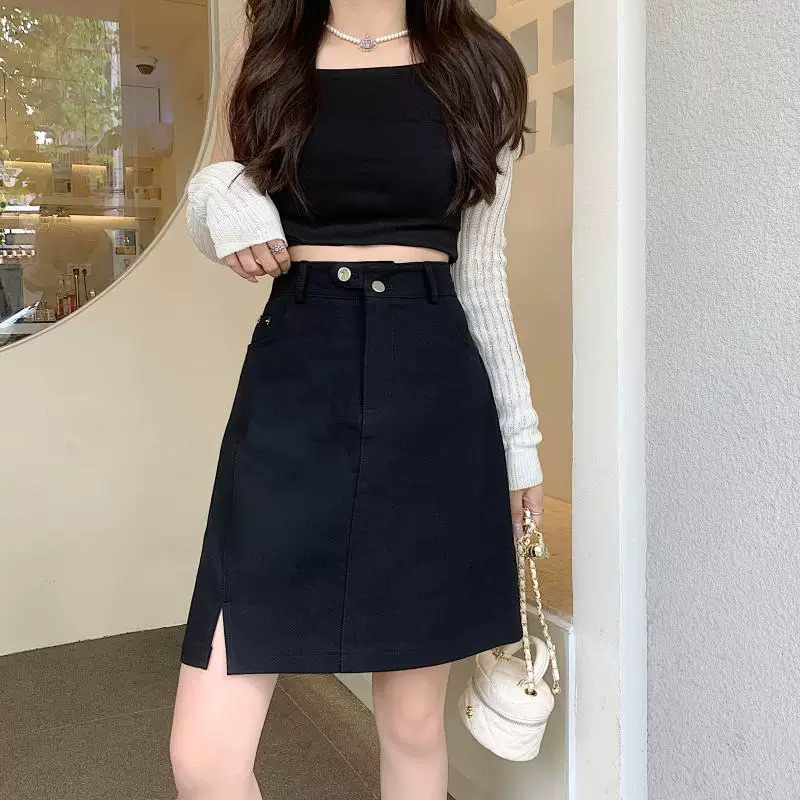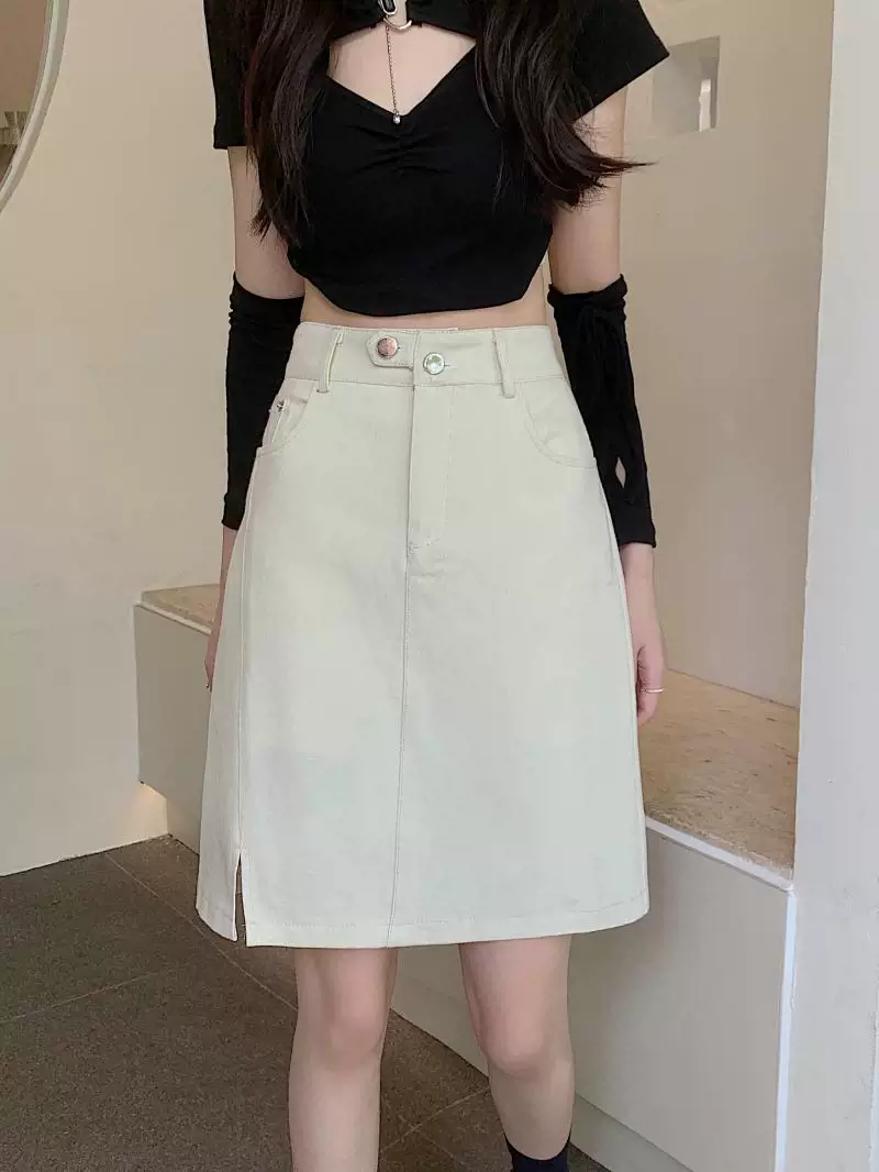 - Váy midi denim xẻ tà size lớn cho nữ, kiểu dáng mới mùa hè, váy bút chì dáng chữ A đa năng, cạp cao, tôn dáng.