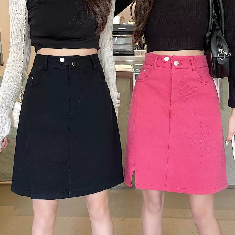 Váy midi denim xẻ tà size lớn cho nữ, kiểu dáng mới mùa hè, váy bút chì dáng chữ A đa năng, cạp cao, tôn dáng.