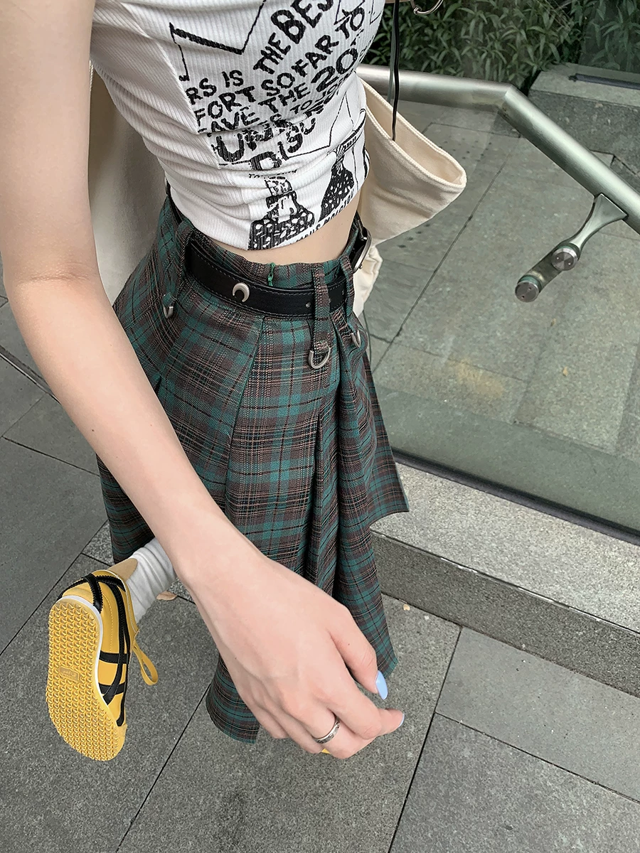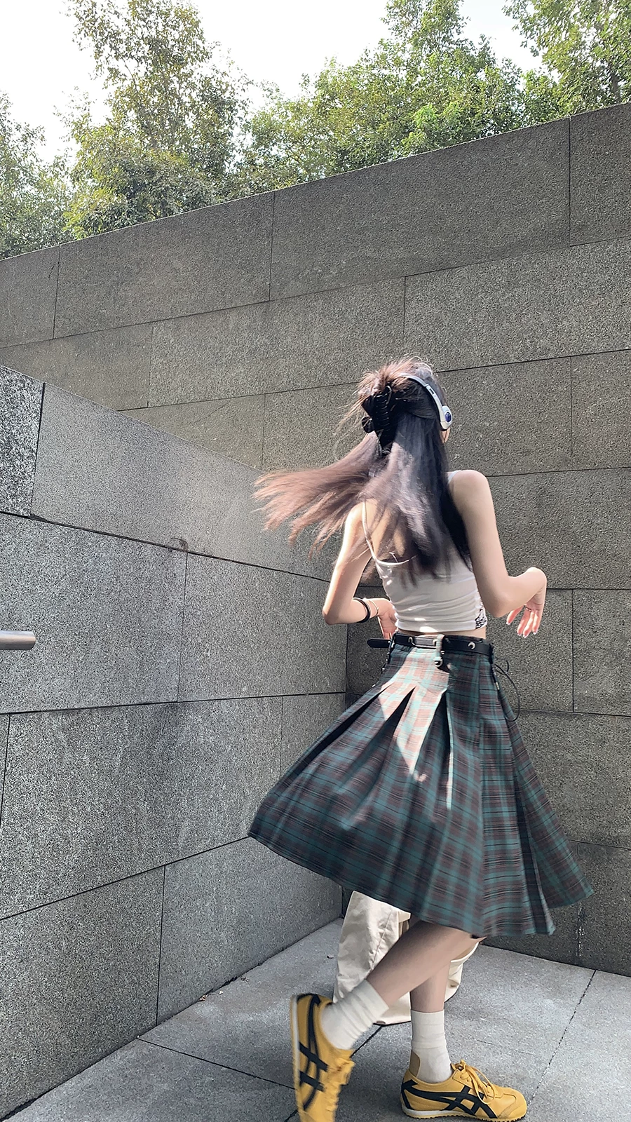 - Váy midi kẻ sọc cho nữ, mùa thu đông, che hông, cạp cao, váy chữ A ôm dáng, dáng rộng, váy dài xếp ly sành điệu.