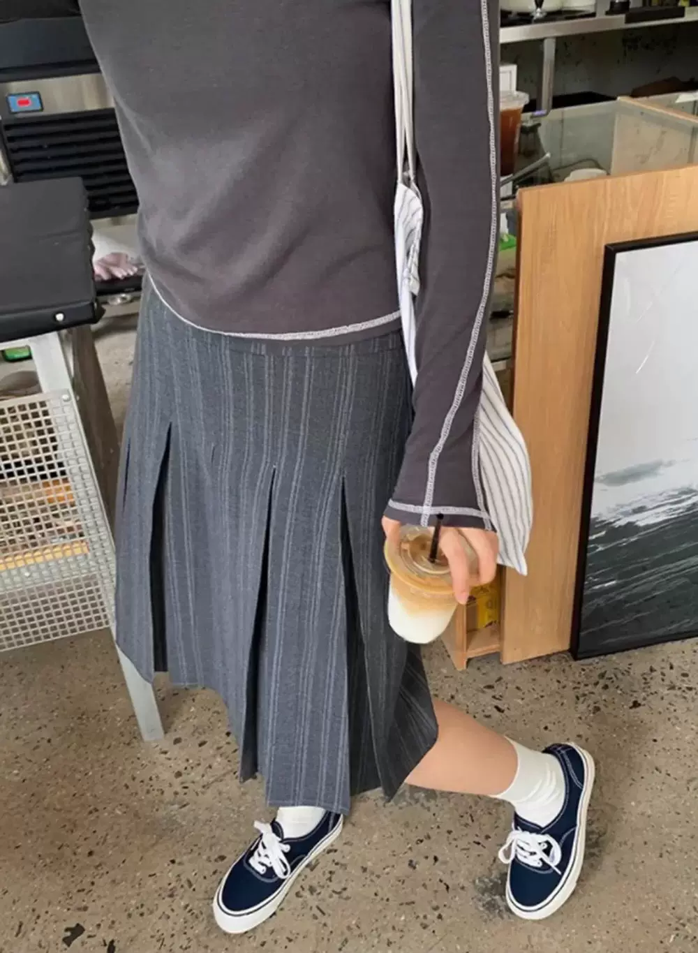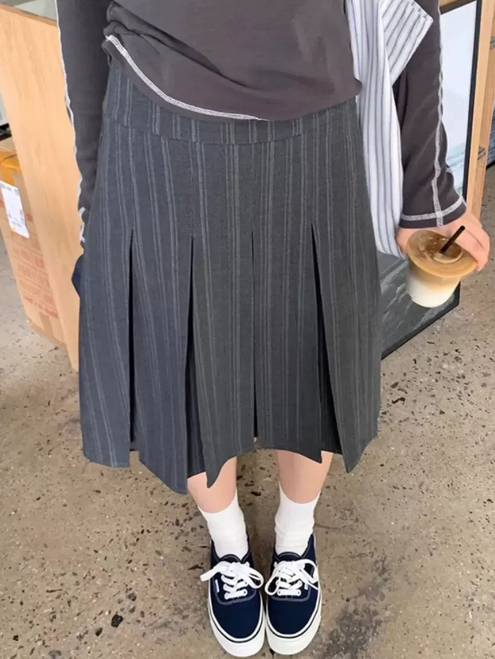 - Váy midi kẻ sọc xám size lớn cho nữ, váy chữ A dáng ôm eo cao mùa hè với thiết kế thời trang, váy xếp ly phù hợp với bộ vest.