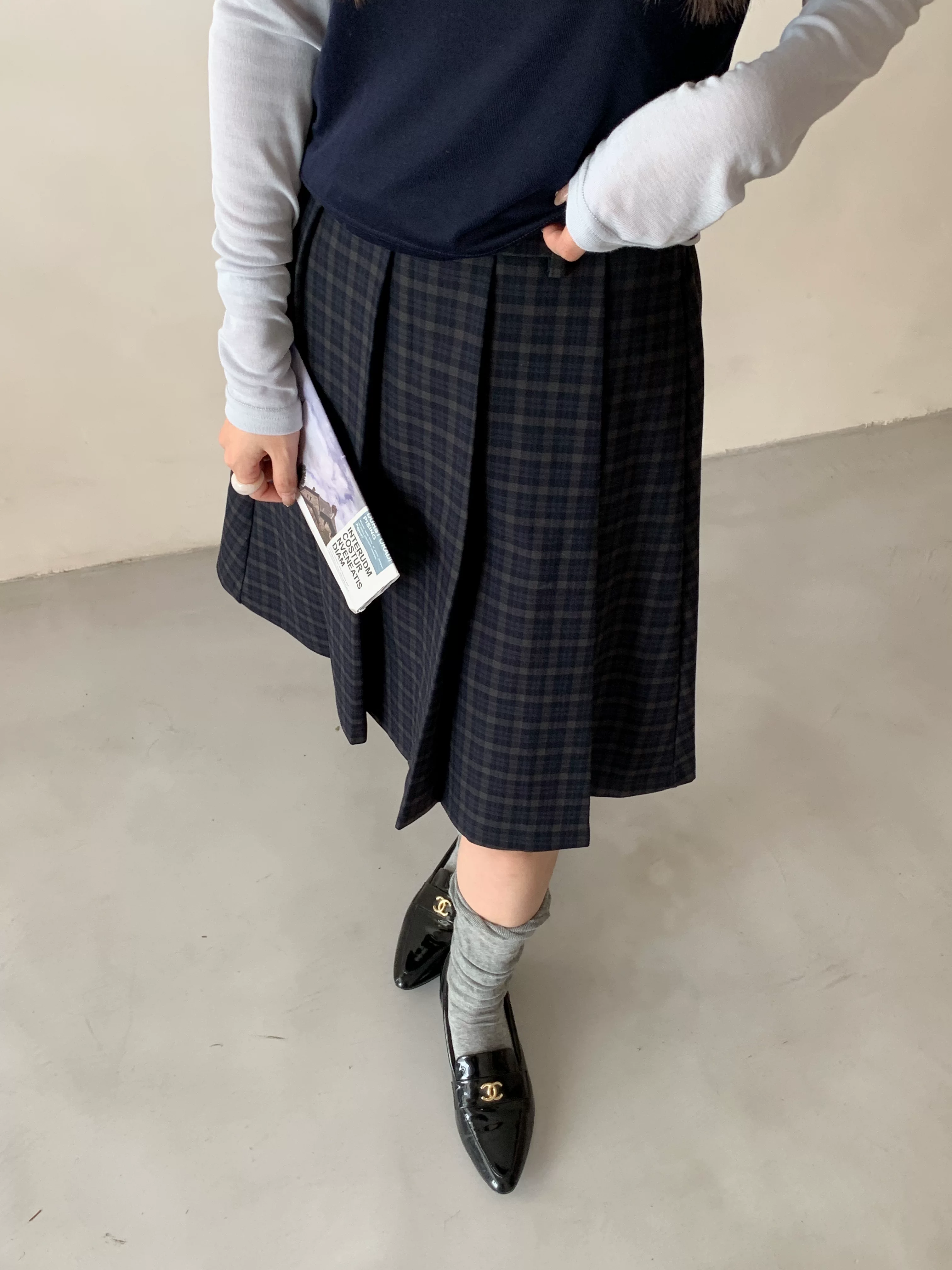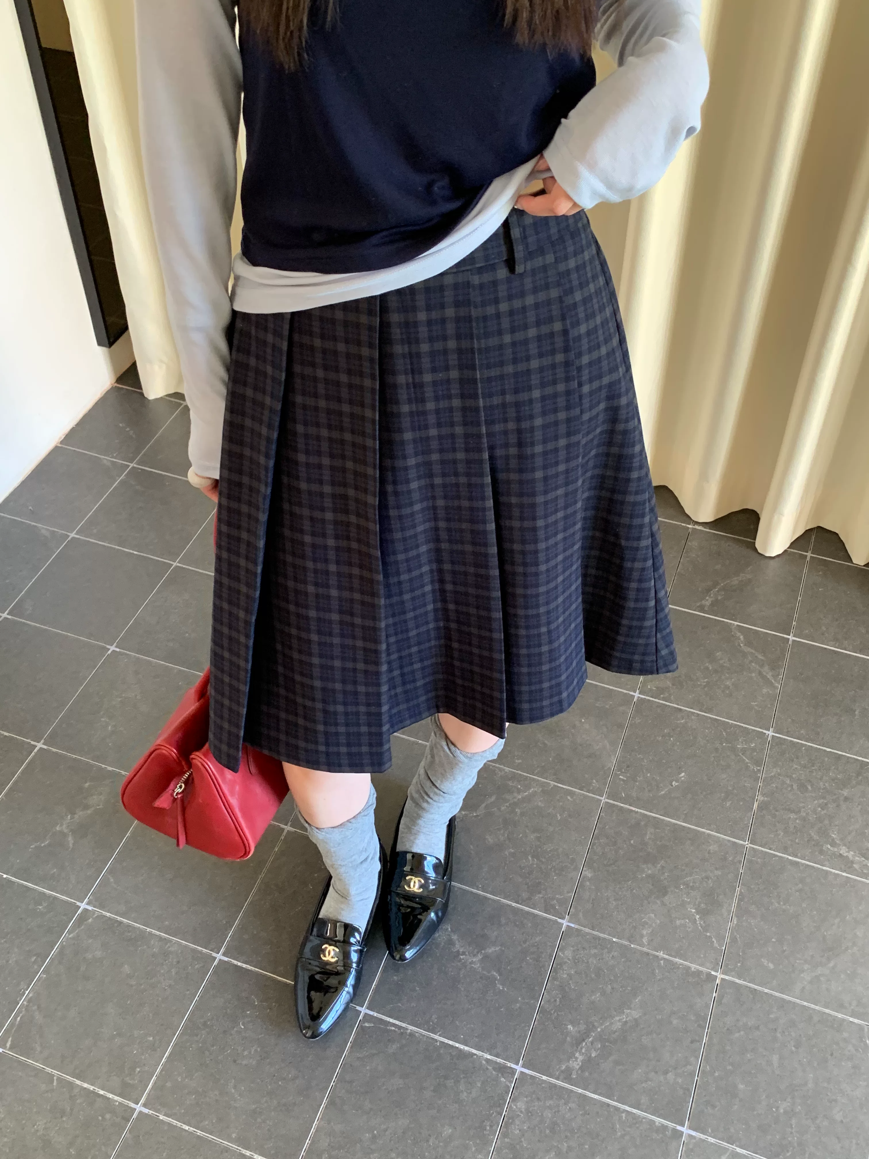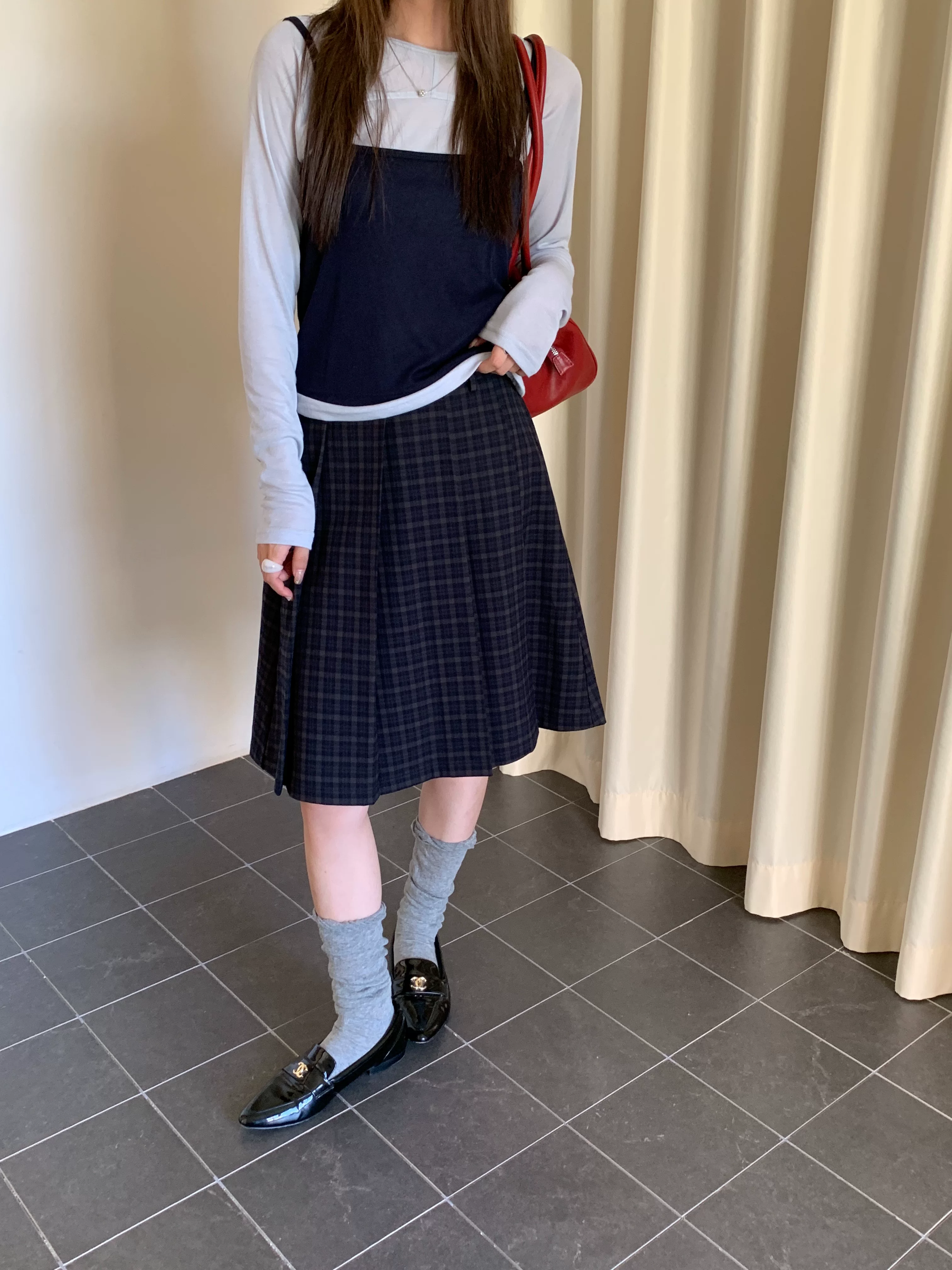 - Váy midi kẻ sọc xanh cao cấp dành cho nữ, phong cách Hàn Quốc, cỡ lớn, tôn dáng, phong cách preppy, váy xếp ly họa tiết, váy chữ A.