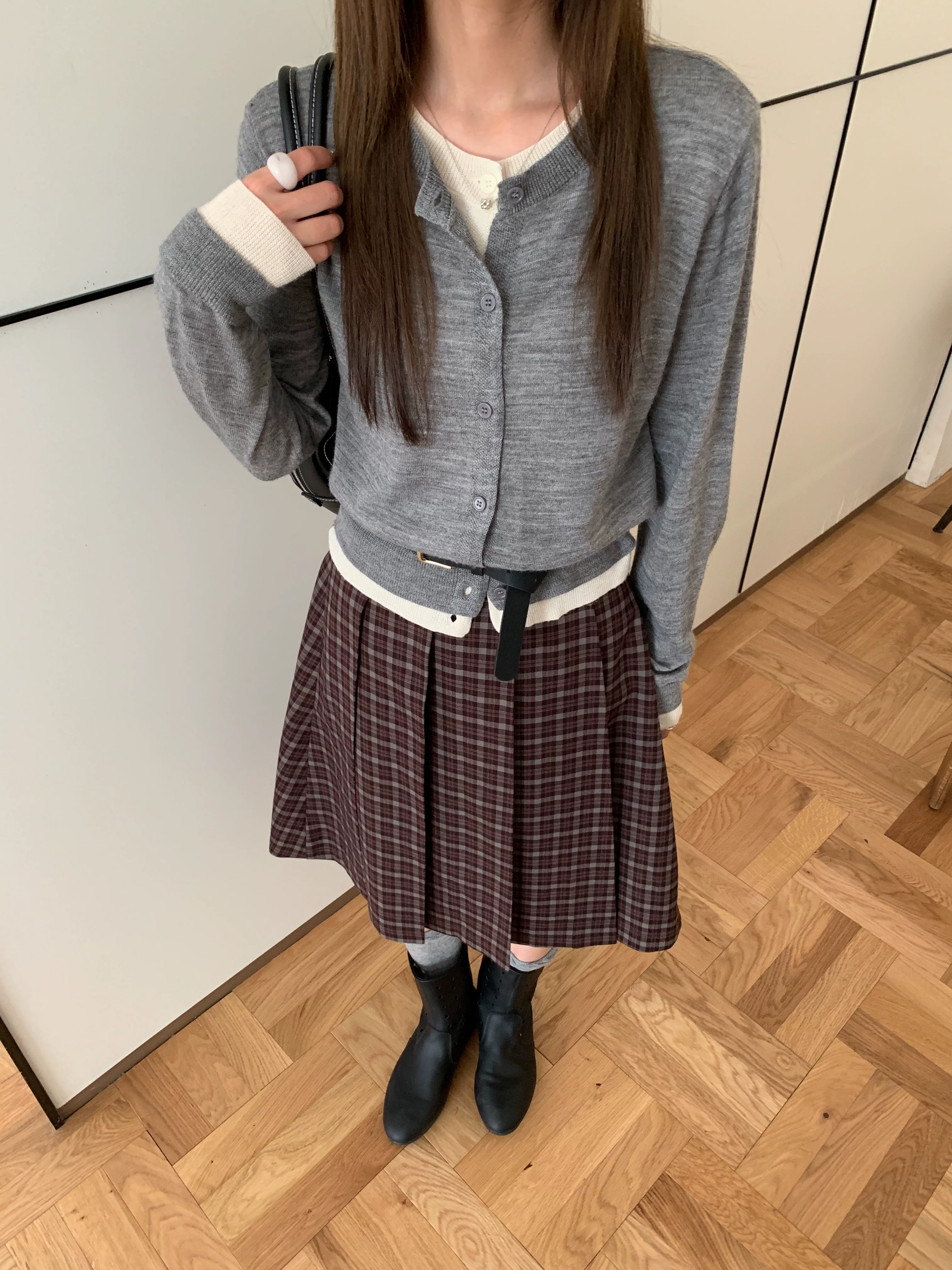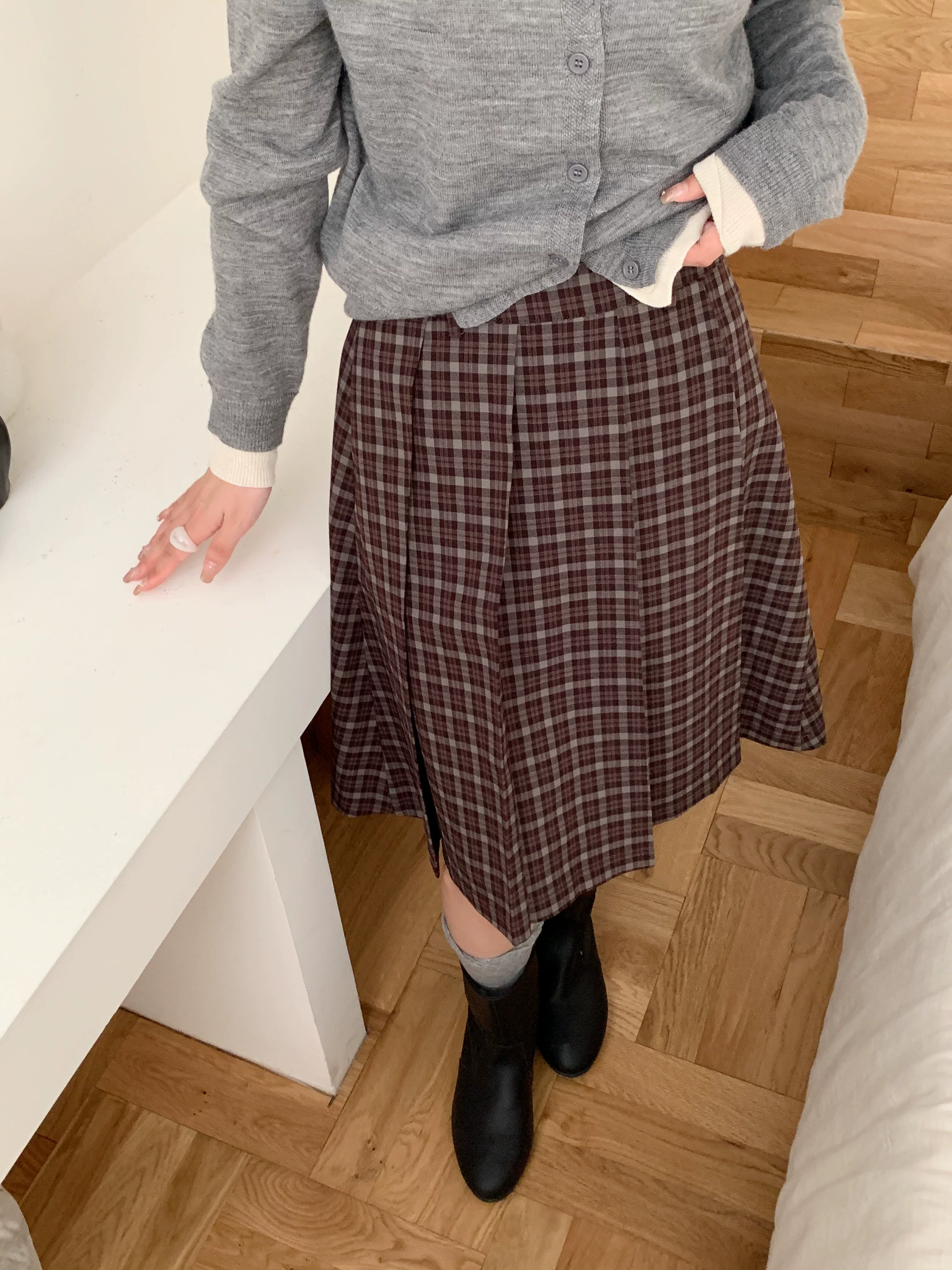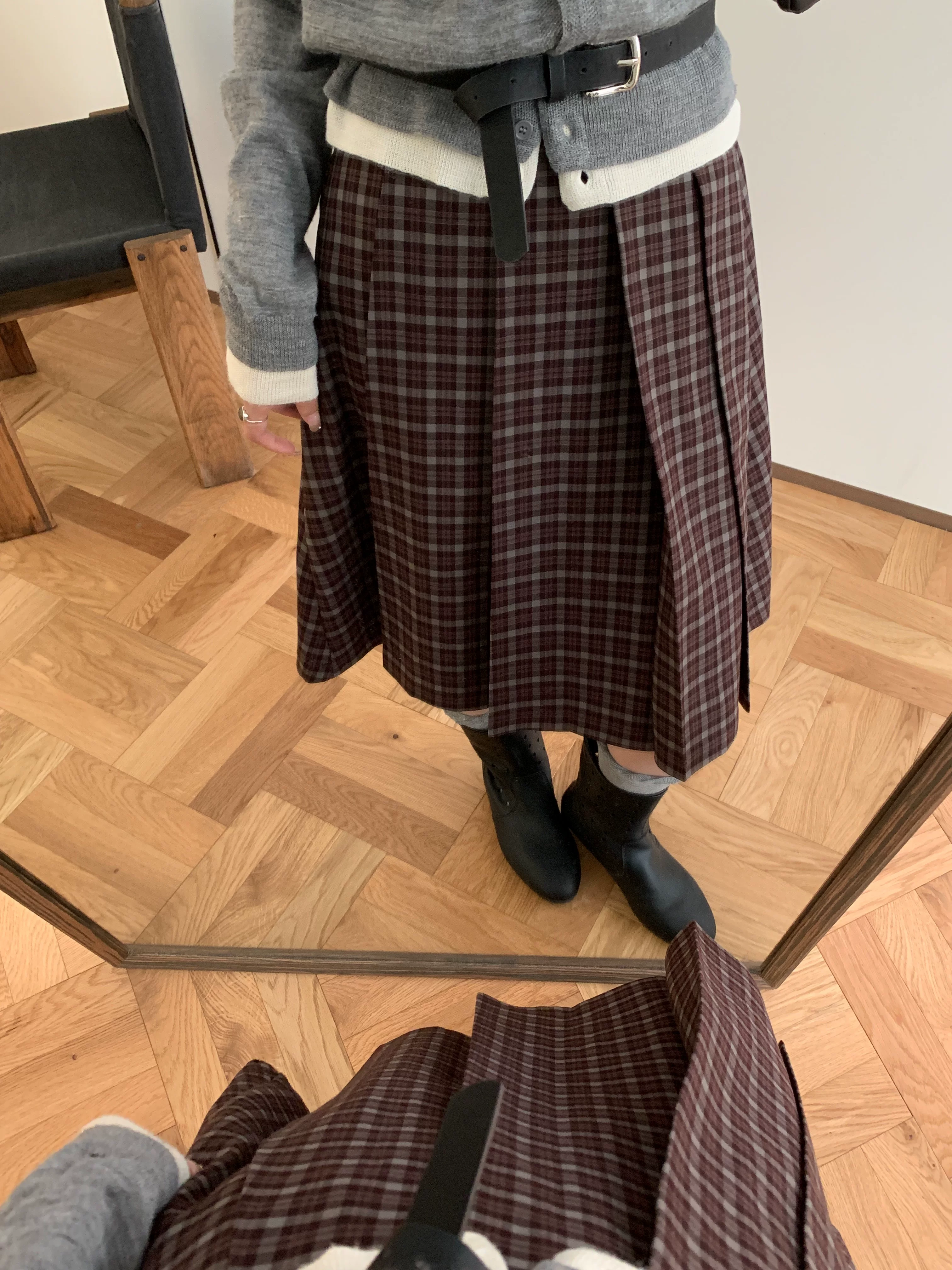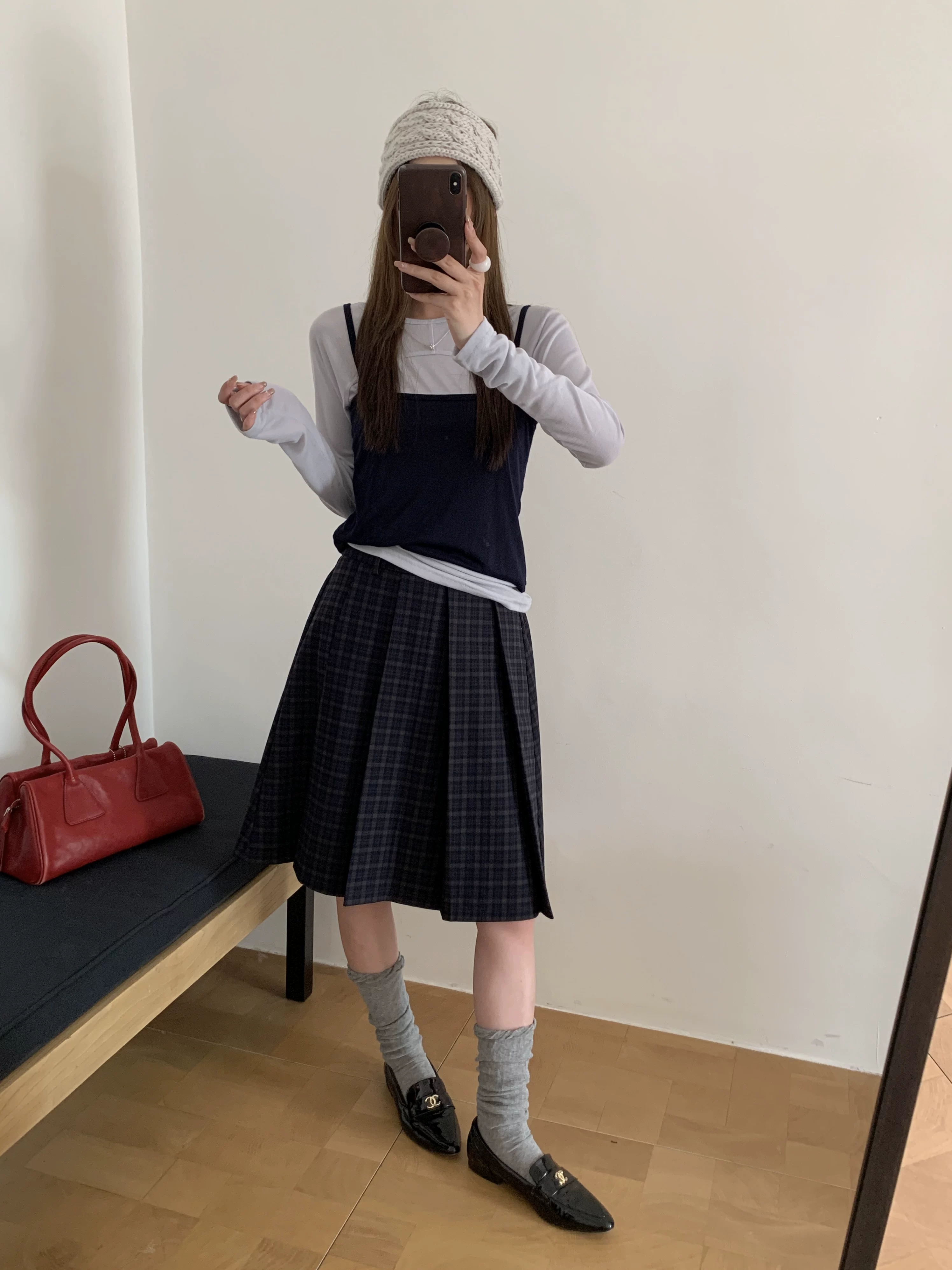 - Váy midi kẻ sọc xanh cao cấp dành cho nữ, phong cách Hàn Quốc, cỡ lớn, tôn dáng, phong cách preppy, váy xếp ly họa tiết, váy chữ A.