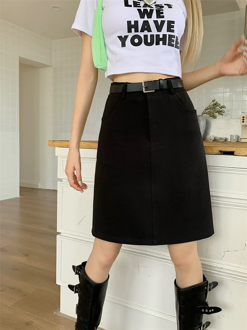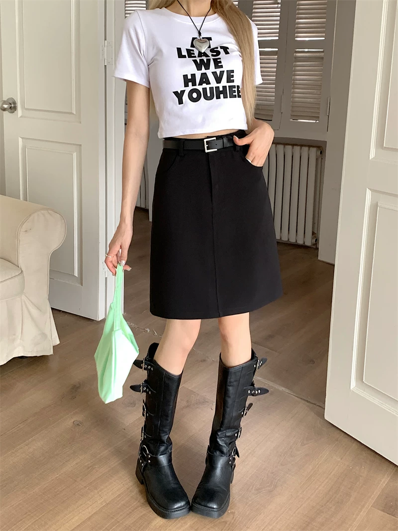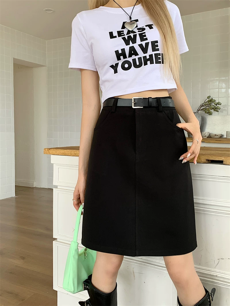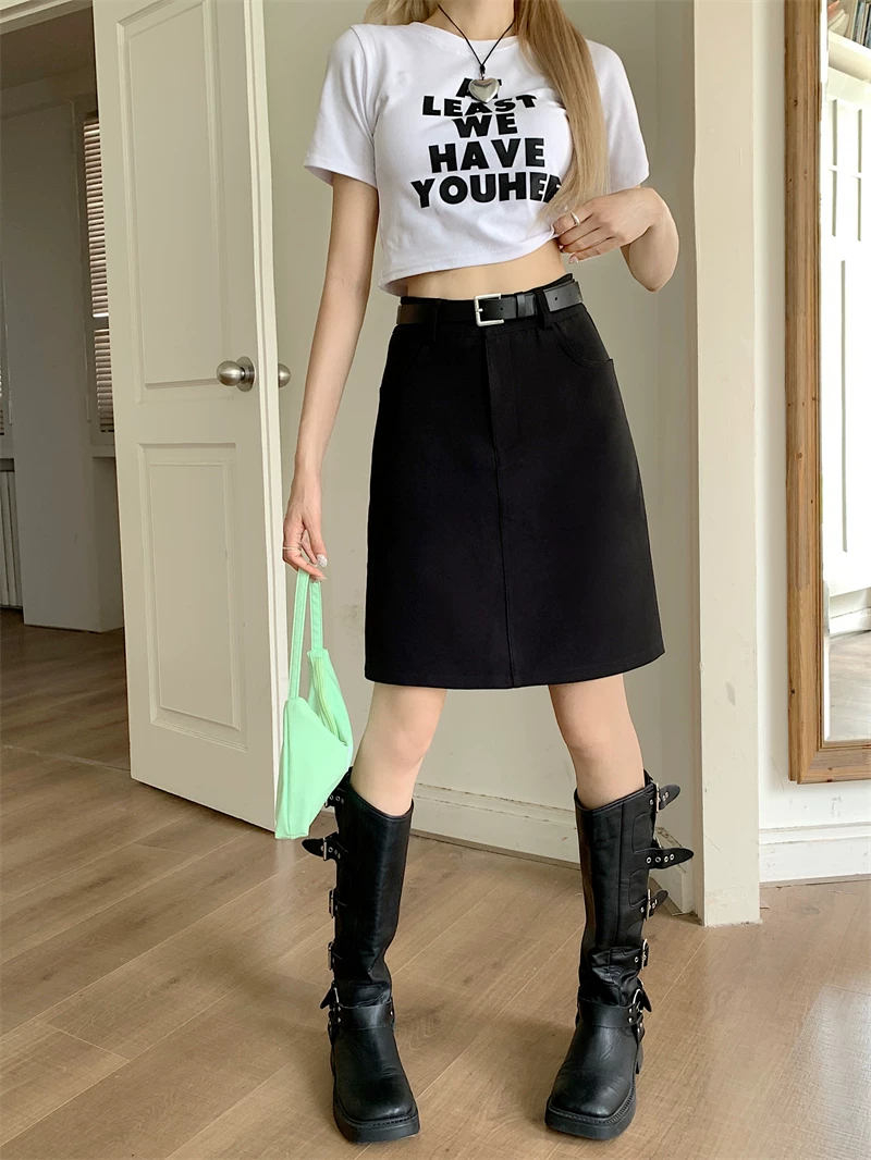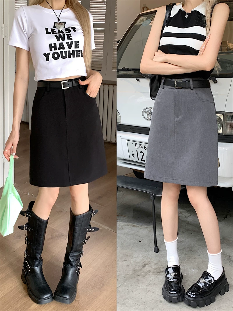 Váy midi kiểu vest màu xám dành cho nữ, cỡ lớn, cạp cao, che hông, thiết kế mùa hè, kiểu dáng chữ A ngắn.