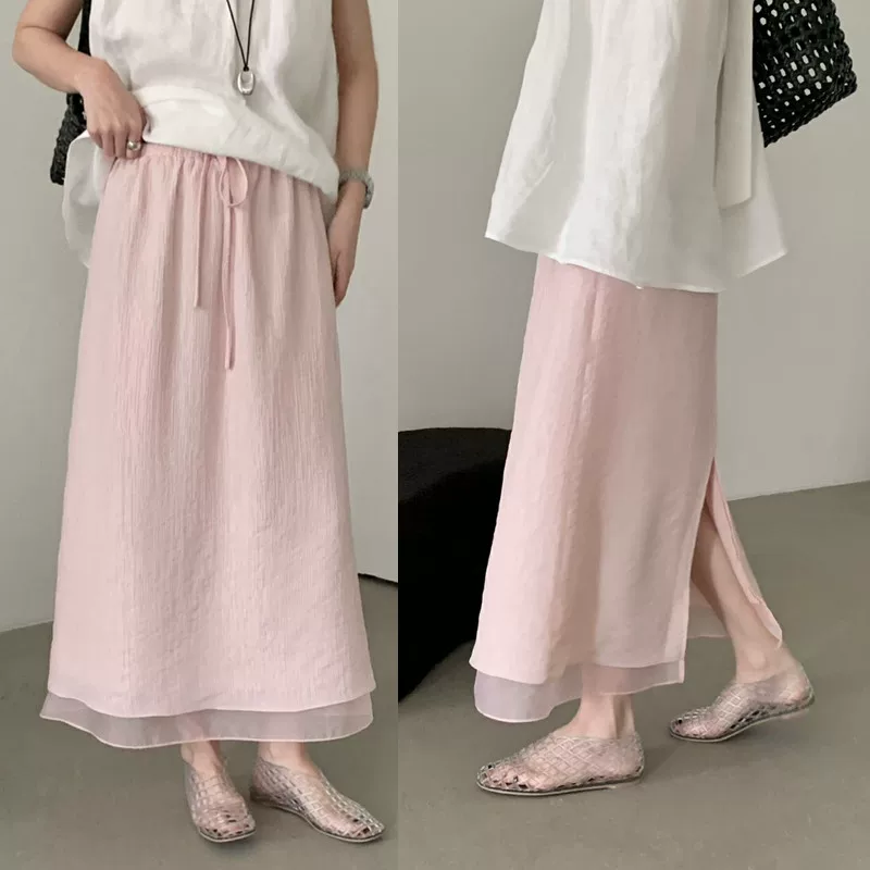 Váy midi màu trơn lưng cao, kiểu dáng mỏng nhẹ mùa hè, size lớn cho người dáng quả lê, váy thẳng, dài ngang đùi có đường xẻ phía sau, váy chữ A.