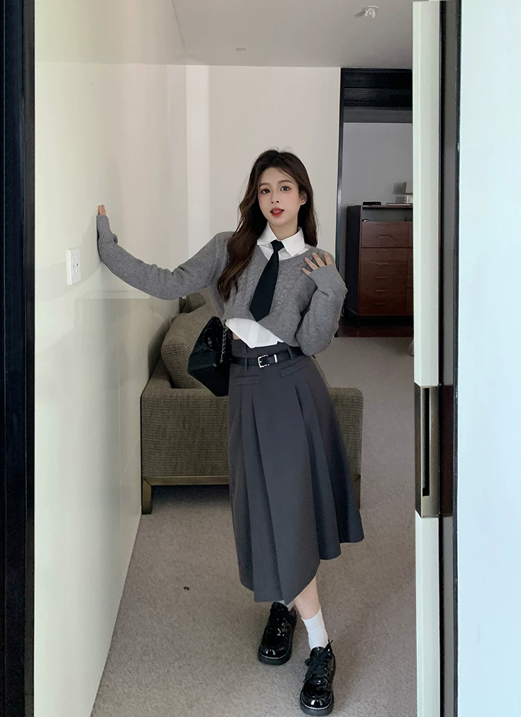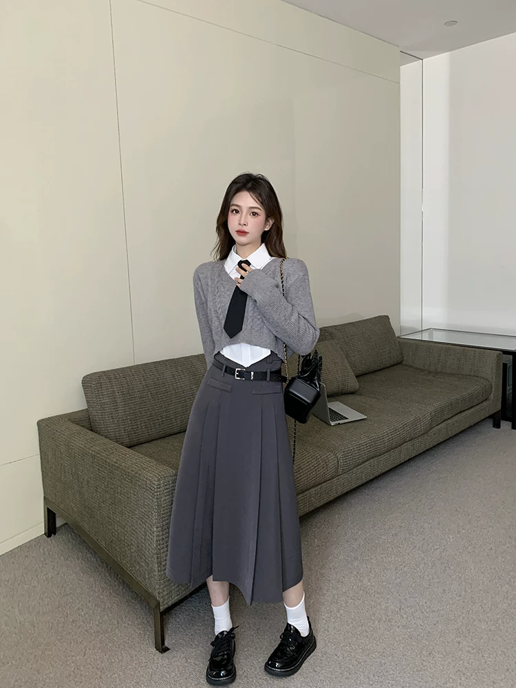 - Váy midi màu xám kiểu vest cao cấp dành cho nữ, thiết kế dáng dài lưng cao, size lớn, kiểu dáng chữ A xếp ly, thích hợp cho mùa thu