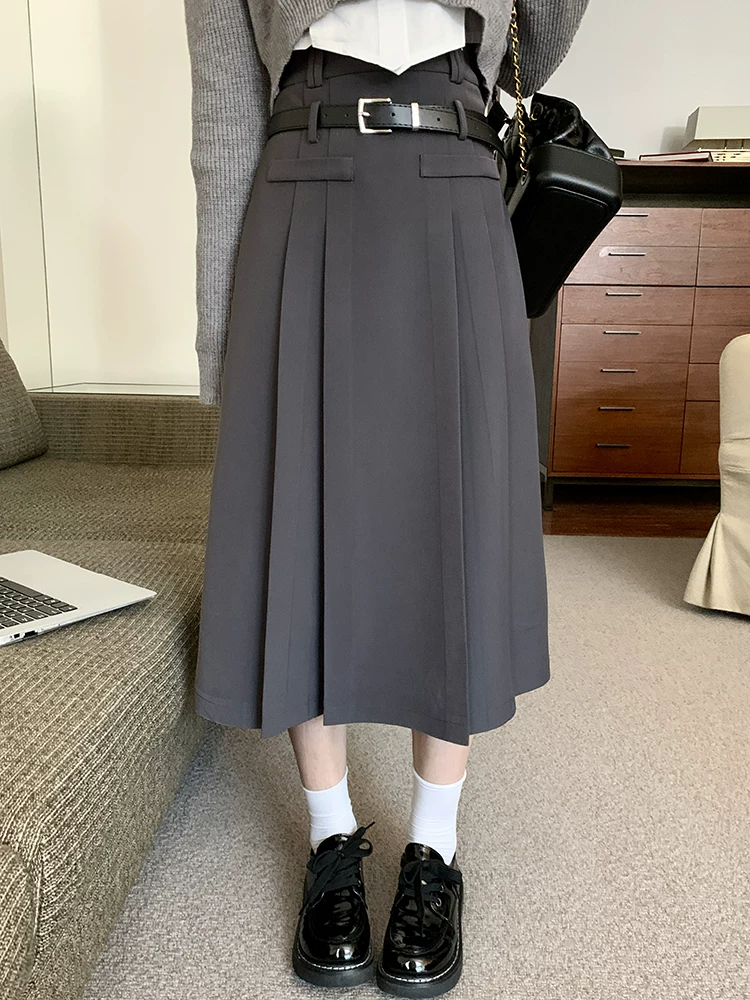 Váy midi màu xám kiểu vest cao cấp dành cho nữ, thiết kế dáng dài lưng cao, size lớn, kiểu dáng chữ A xếp ly, thích hợp cho mùa thu