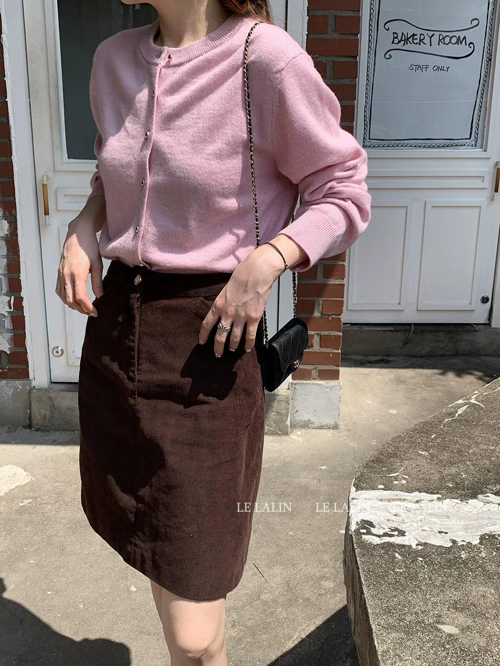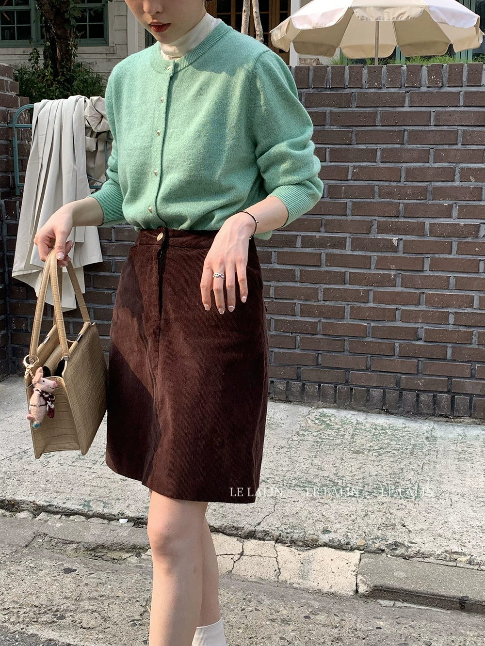 Váy midi nhung kẻ màu nâu cỡ lớn dành cho nữ, váy chữ A cạp cao tôn dáng mùa thu đông, váy ngắn ôm hông chống lộ.
