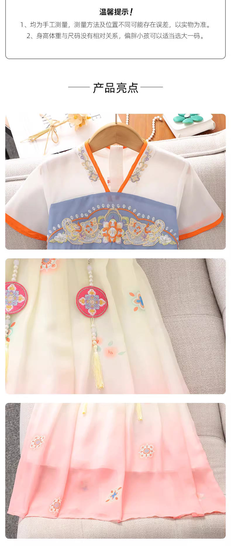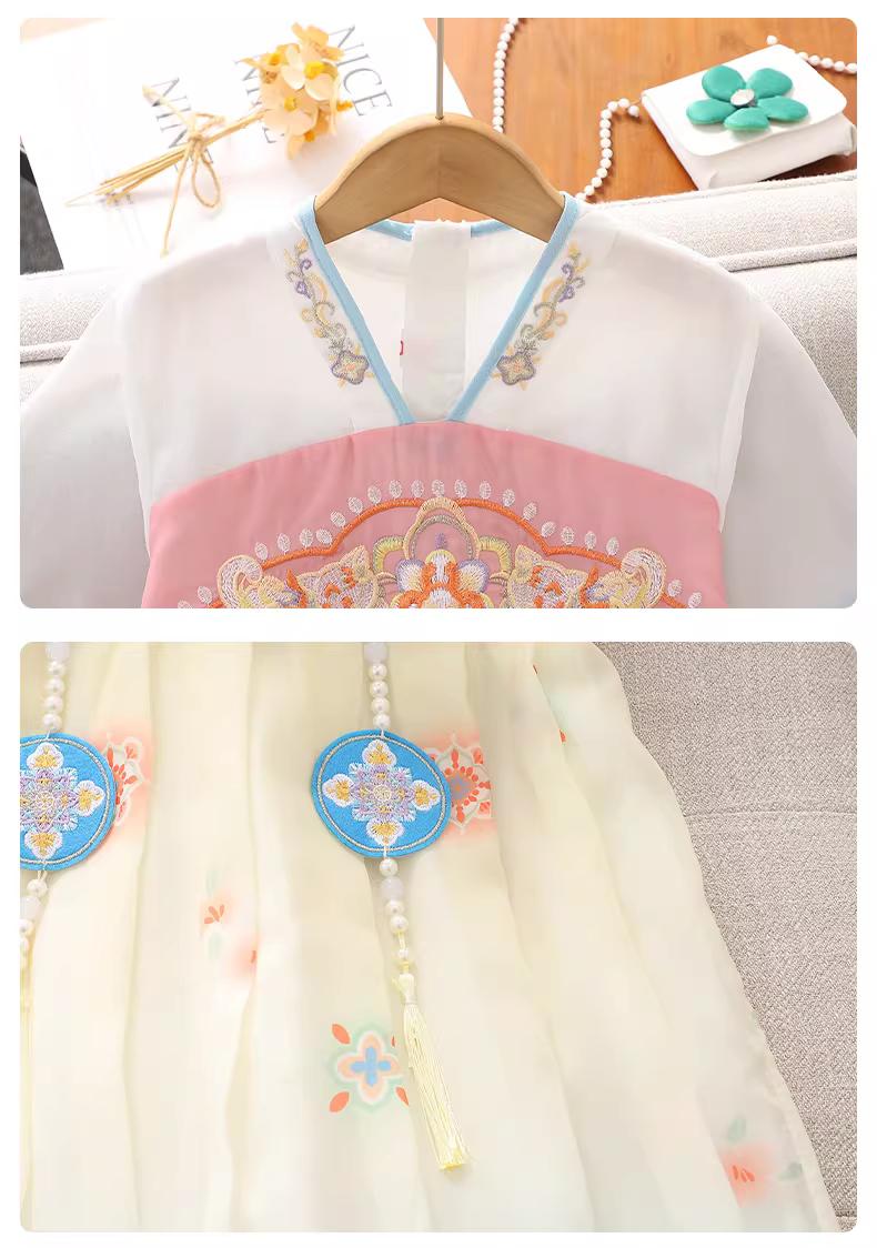- Váy mùa hè kiểu cổ điển cho bé gái 2025, quần áo trẻ em mới, váy Hanfu kiểu Trung Hoa, váy Tang phục mùa hè cho bé gái