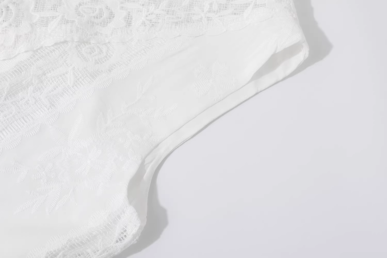 - Váy ngắn cổ chữ V thêu ren nặng kiểu cổ điển dành cho nữ mùa xuân hè, màu trắng, không tay