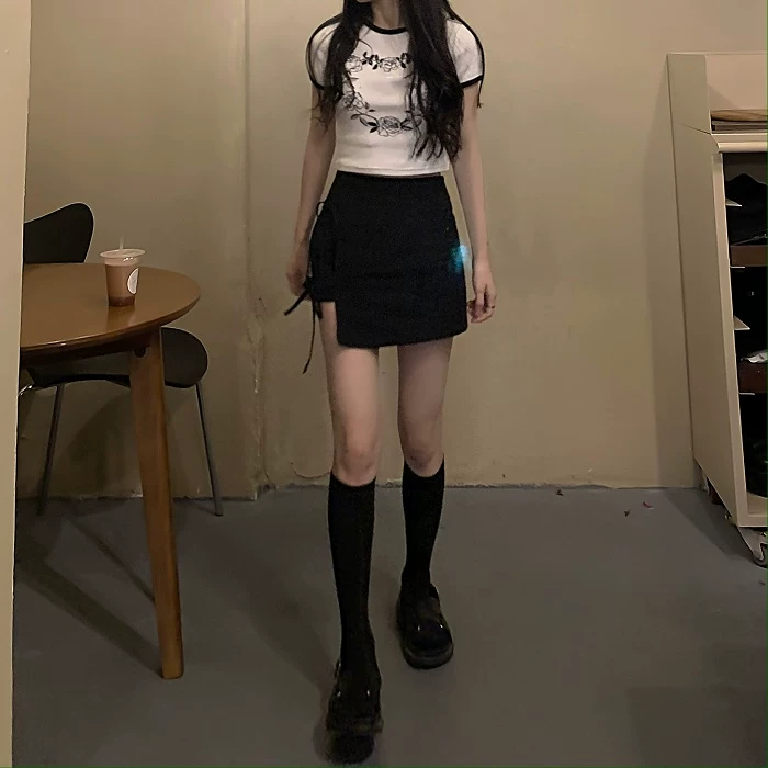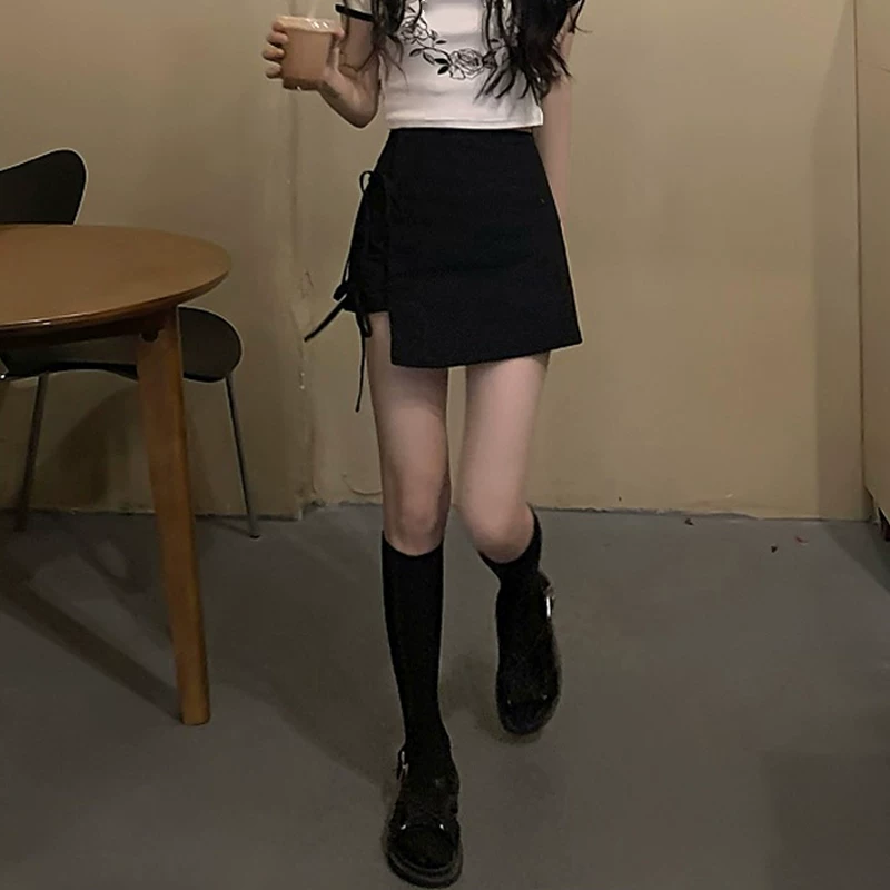 Váy ngắn dáng bất quy tắc, có tác dụng giảm béo, dành cho nữ, kiểu dáng cao eo, đa năng, phong cách BM, dành cho sinh viên, kiểu dáng chữ A, ôm hông, nửa thân.