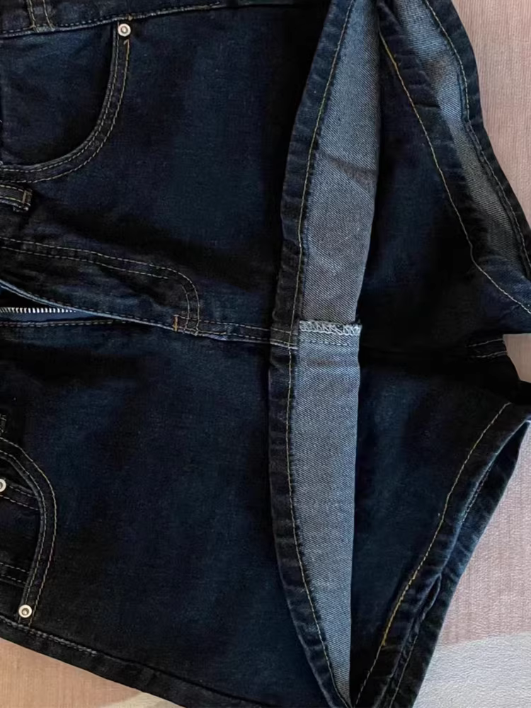 - Váy ngắn denim dáng quả lê dành cho nữ, váy mỏng mùa hè, cỡ lớn, lưng cao, che hông, váy chữ A thon gọn.