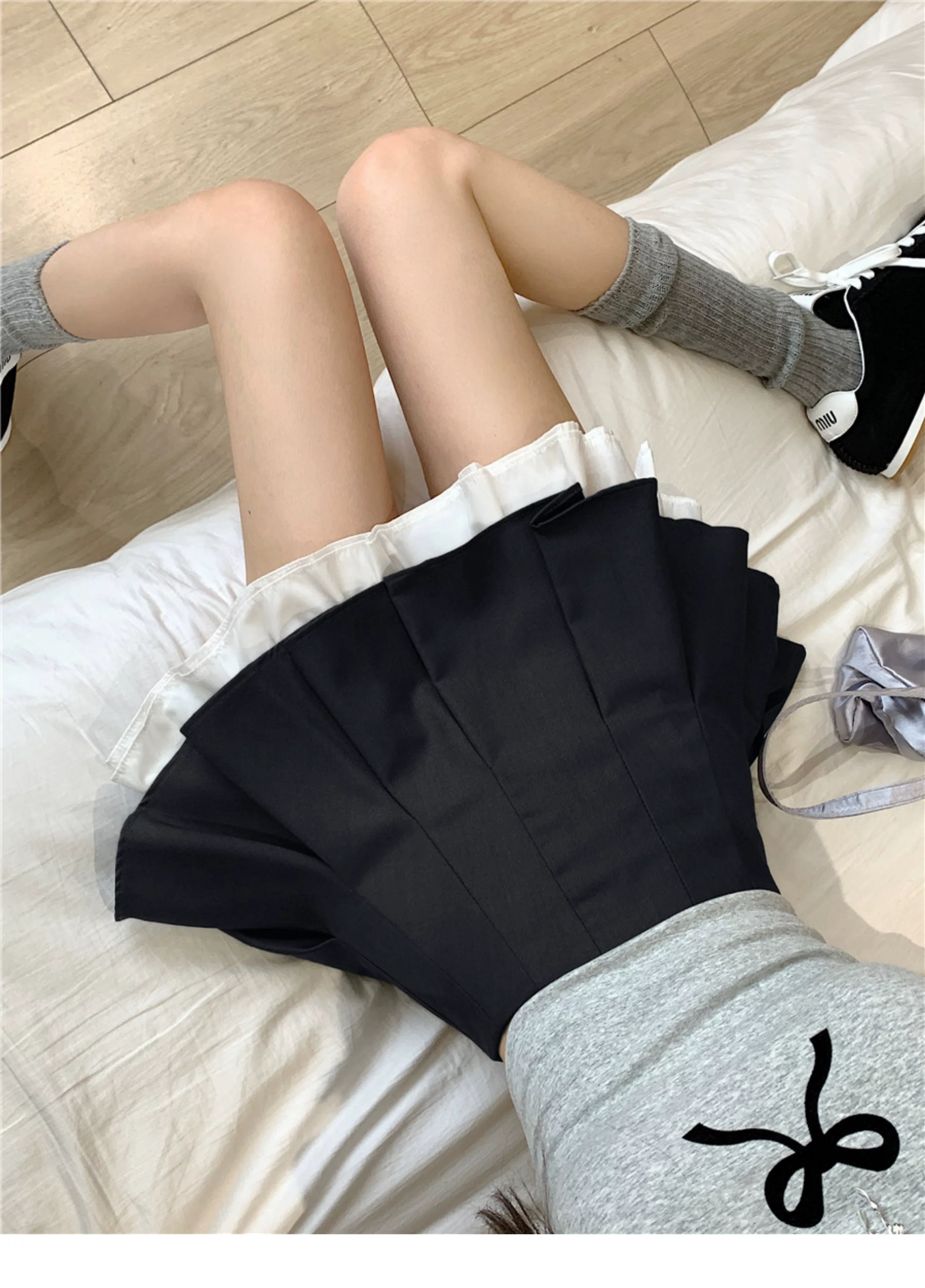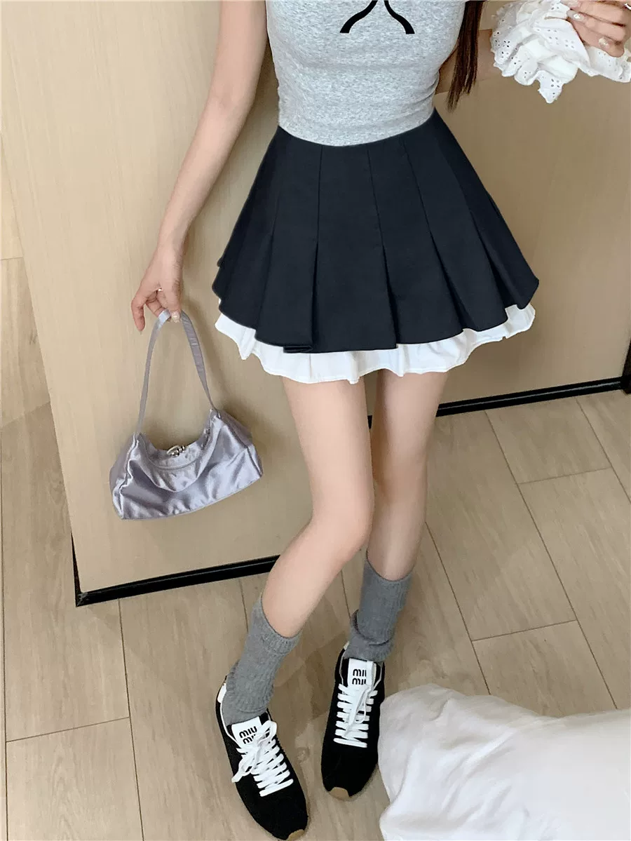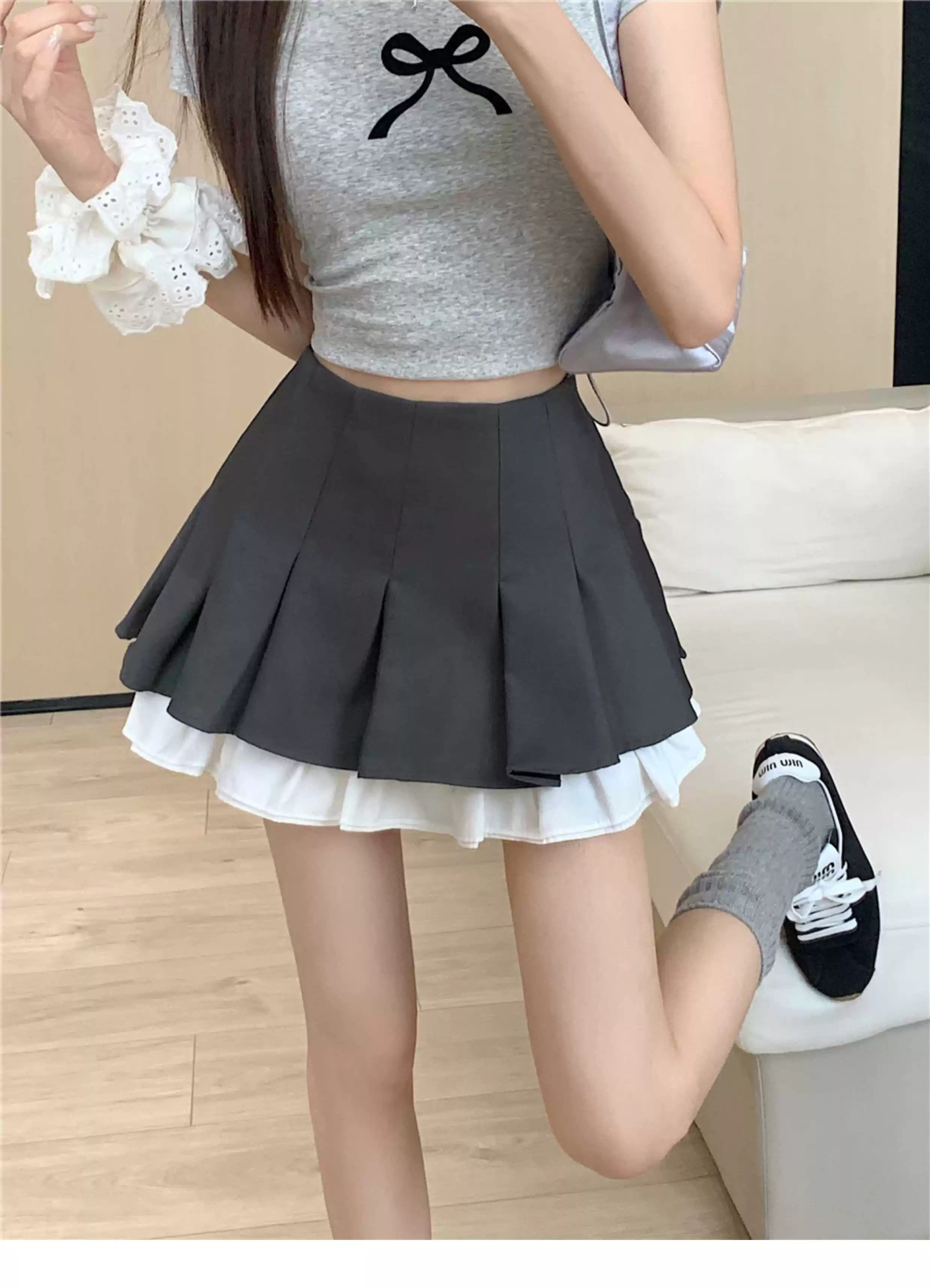 Váy ngắn kiểu Mỹ gợi cảm, váy xếp tầng cao eo cỡ lớn, quần váy xếp ly thiết kế, váy chữ A mùa hè dành cho người nhỏ nhắn.