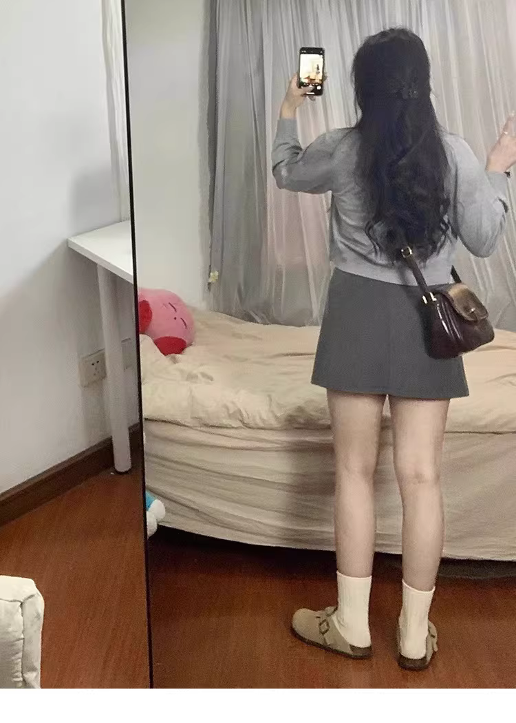 - Váy ngắn màu xám đậm dành cho nữ, cỡ lớn mùa hè, cạp cao, tôn dáng, dành cho người có thân hình quả lê, váy chữ A nhỏ nhắn.