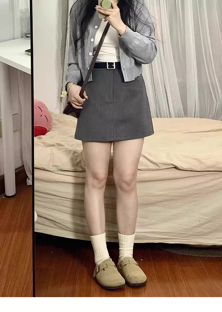 Váy ngắn màu xám đậm dành cho nữ, cỡ lớn mùa hè, cạp cao, tôn dáng, dành cho người có thân hình quả lê, váy chữ A nhỏ nhắn.