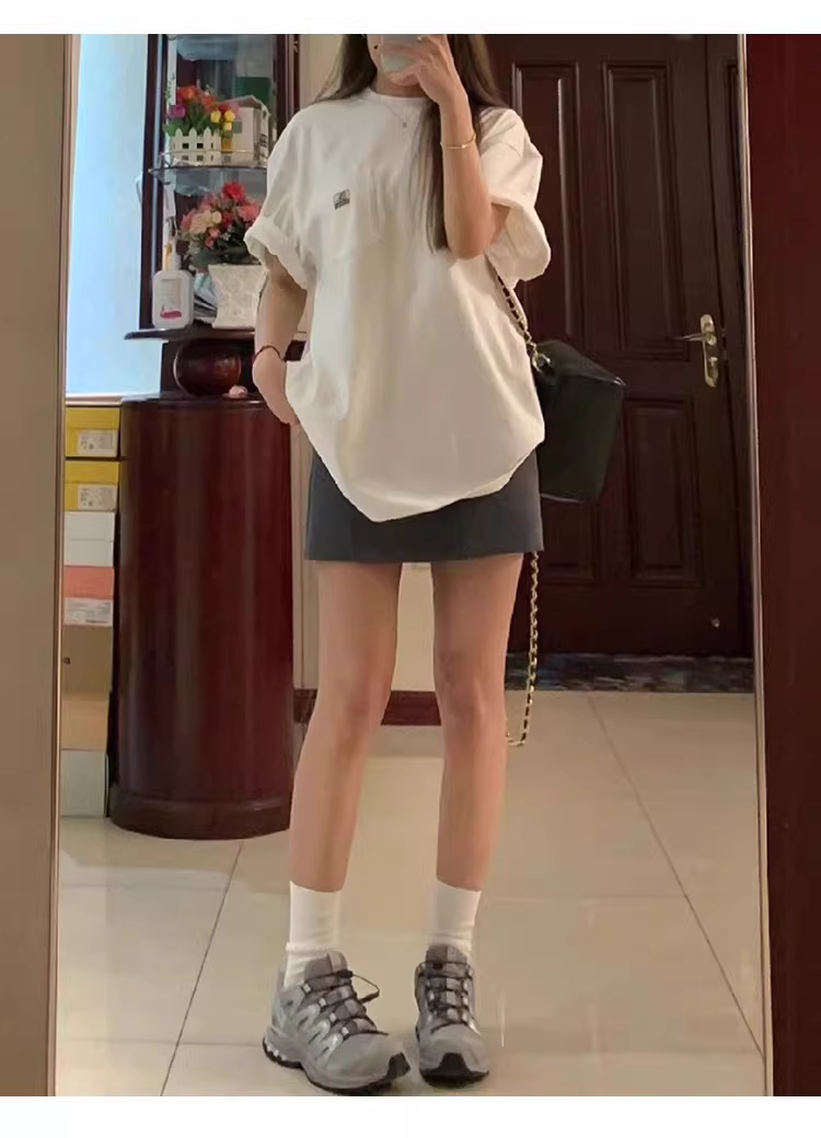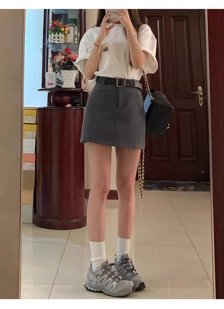 - Váy ngắn màu xám đậm dành cho nữ, kiểu dáng mỏng mùa hè, cỡ lớn, lưng cao, váy bút chì chữ A che hông, váy nửa thân thon gọn.