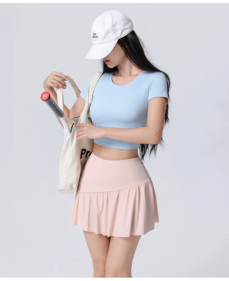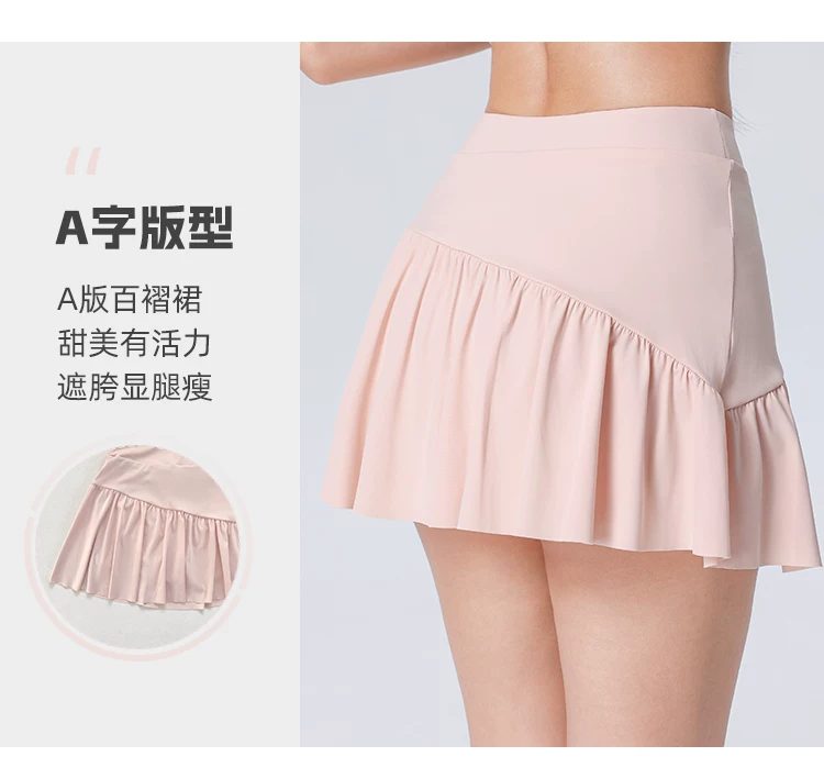 Váy ngắn yoga chống nắng mùa hè 2026, cạp cao, xếp ly, kiểu dáng chữ A, dành cho nữ