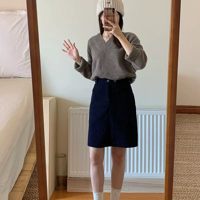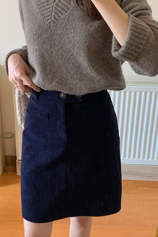 灯芯绒半身裙,复古文艺范