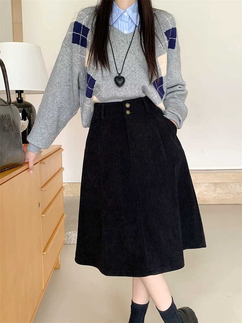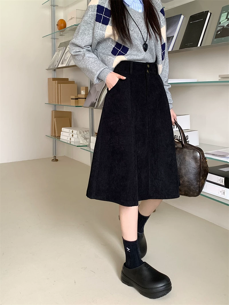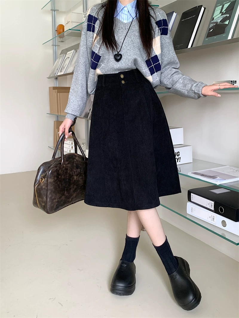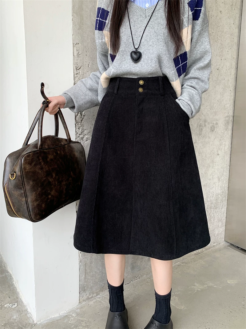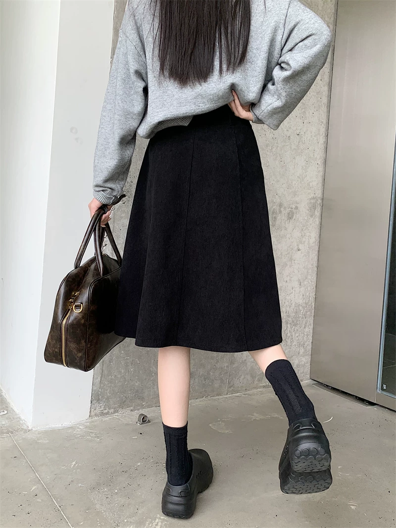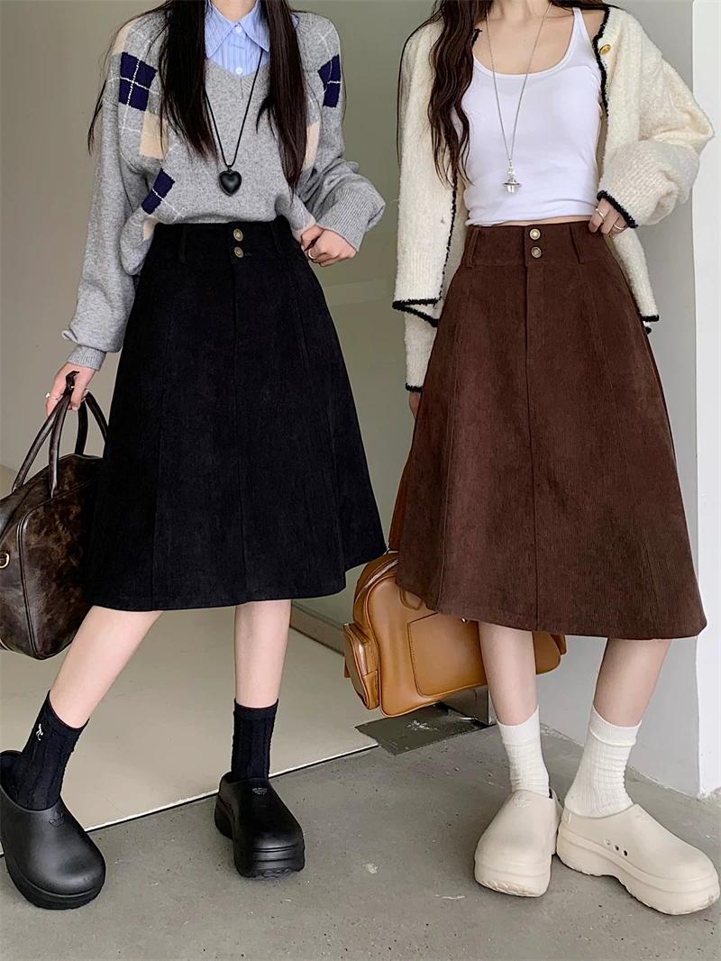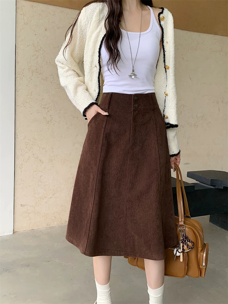 - Váy nhung nâu cỡ lớn dành cho nữ, váy midi cạp cao che hông mùa thu đông, váy xòe chữ A tôn dáng.