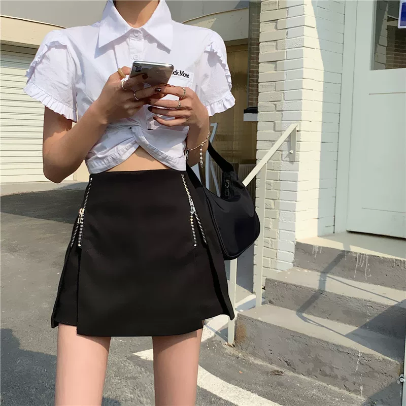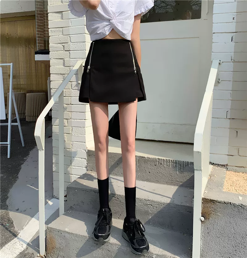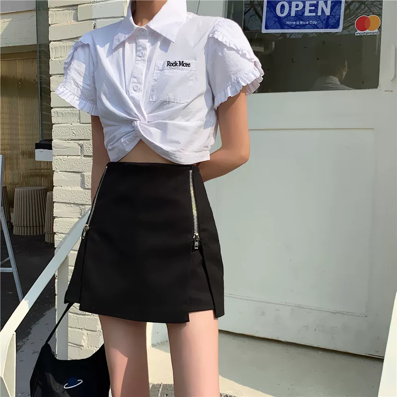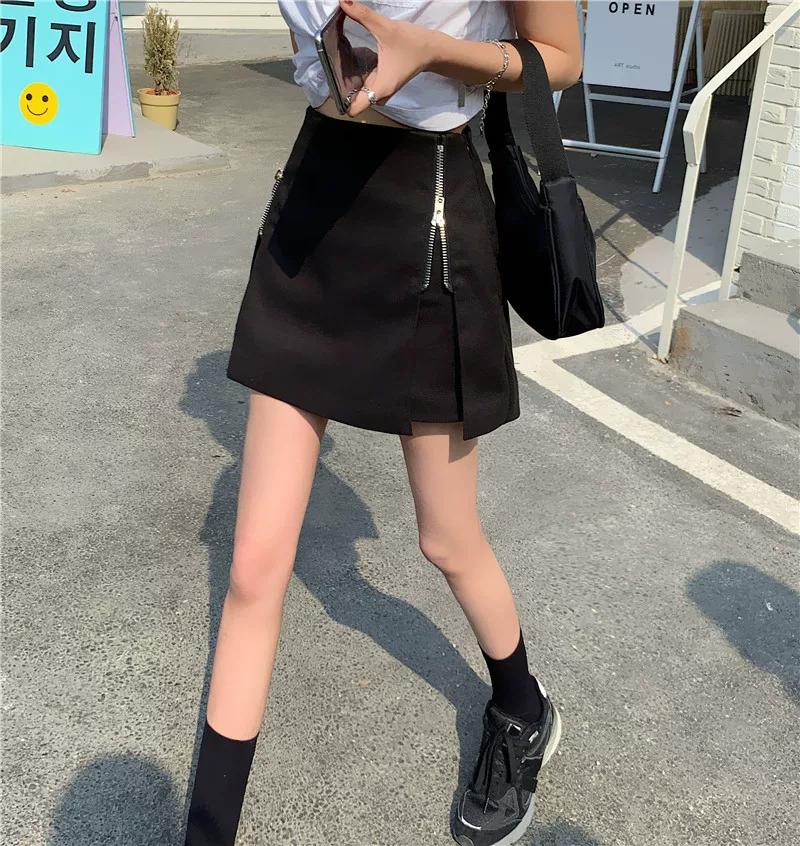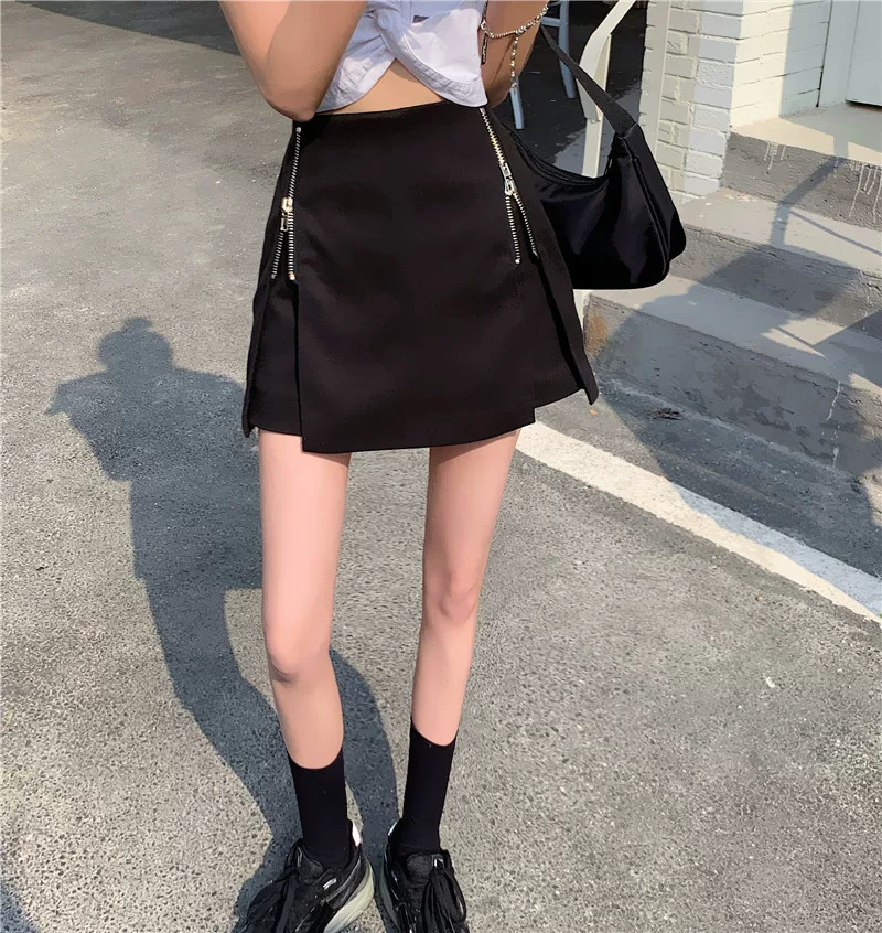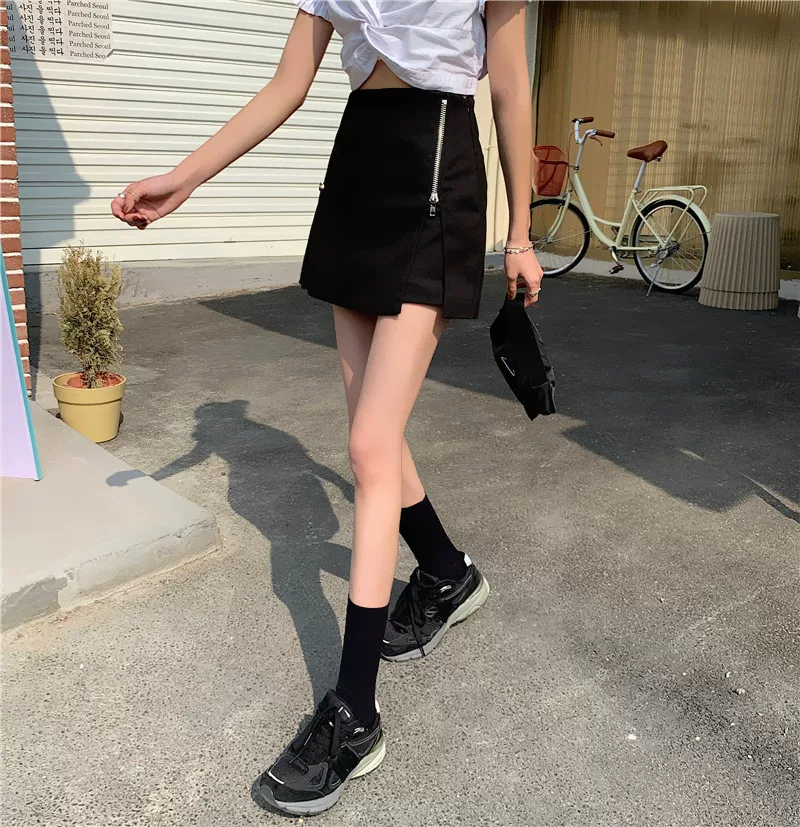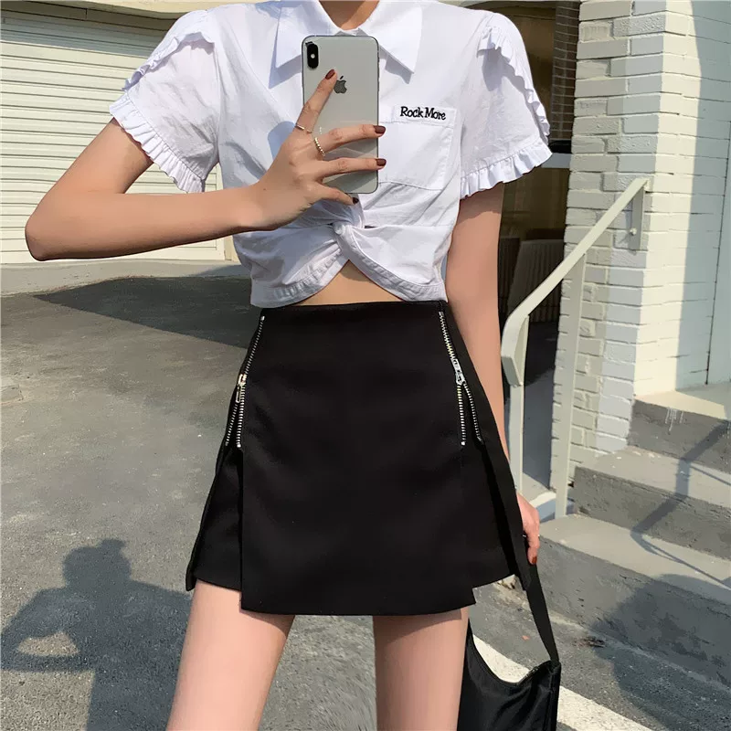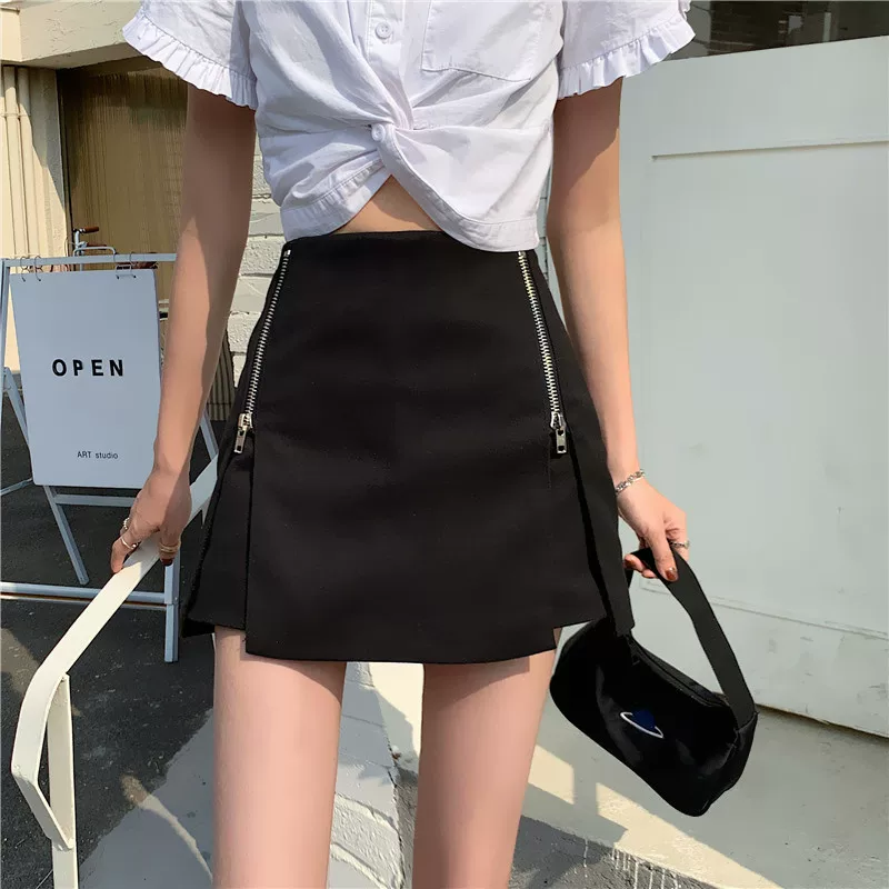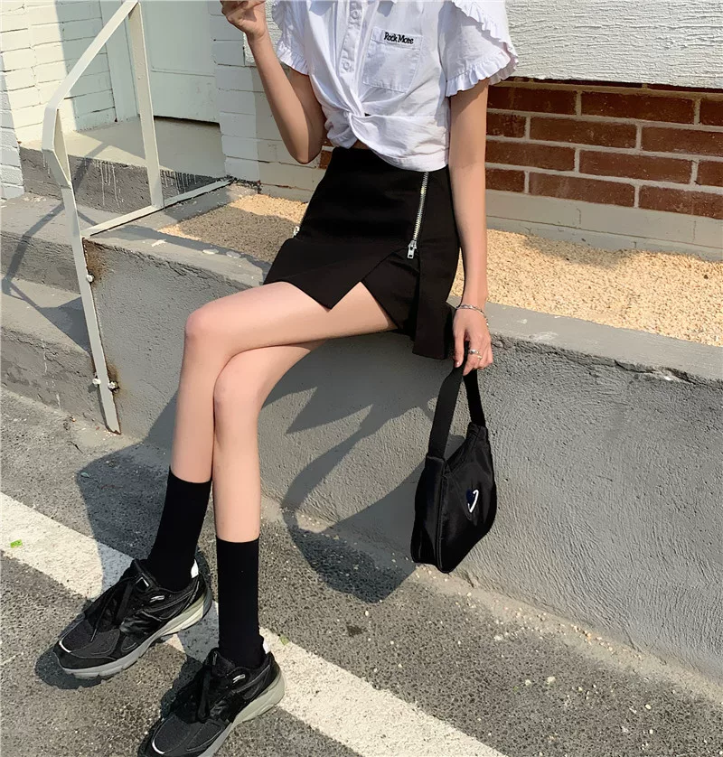 Váy ôm hông cho nữ, mùa xuân hè, xẻ tà, lưng cao, ôm dáng, váy chữ A không đều, quần váy cỡ lớn màu đen, váy ngắn