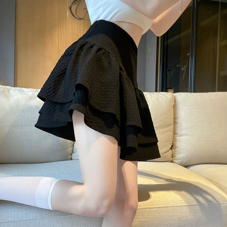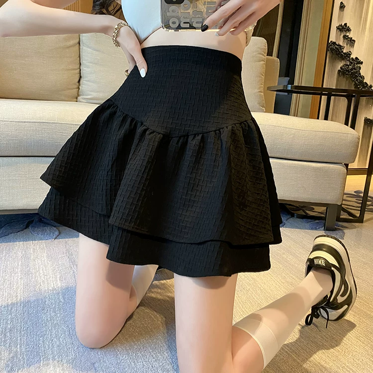 Váy phồng cỡ lớn dành cho nữ, váy xếp tầng lưng cao, được thiết kế để che bụng, váy dù, váy ngắn chữ A chống lộ.