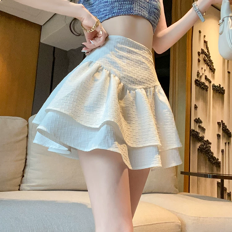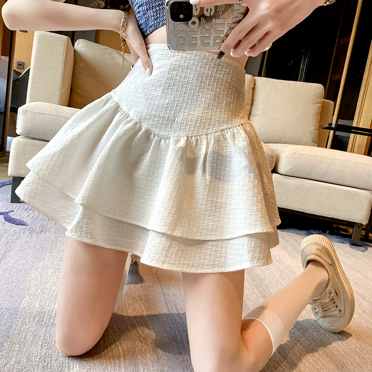 - Váy phồng cỡ lớn dành cho nữ, váy xếp tầng lưng cao, được thiết kế để che bụng, váy dù, váy ngắn chữ A chống lộ.