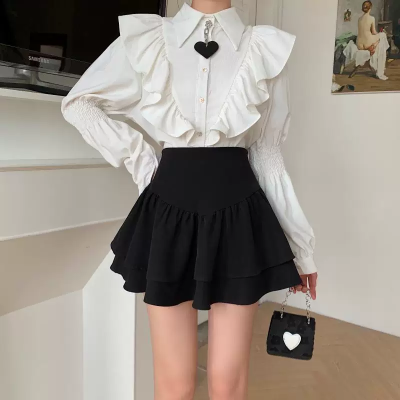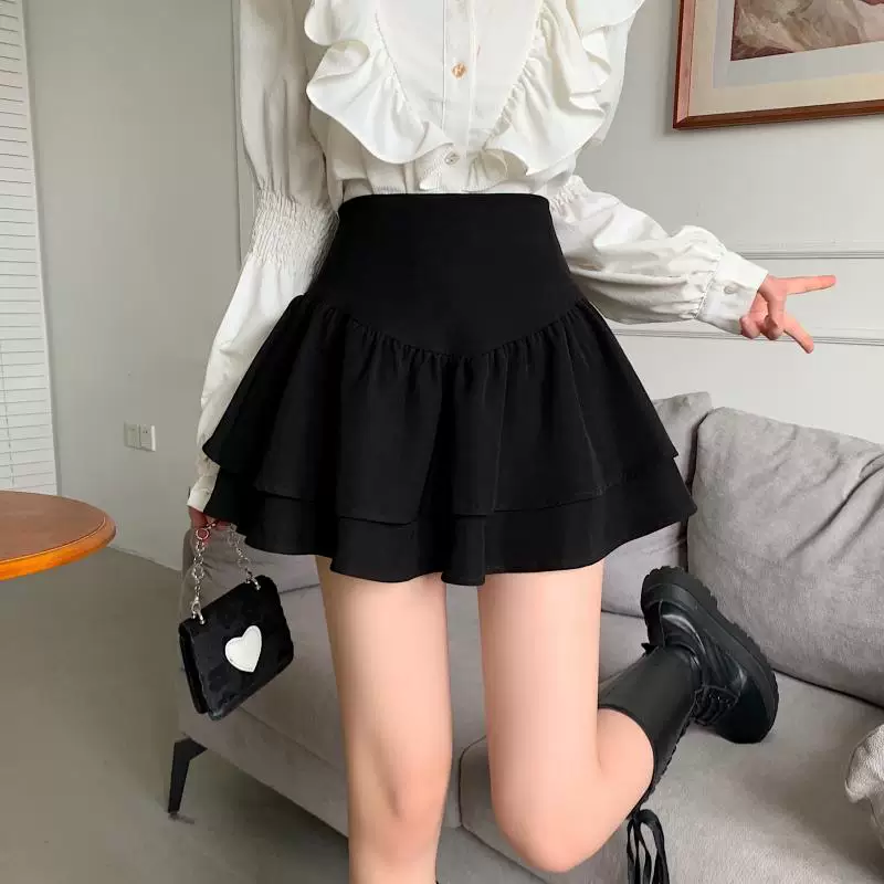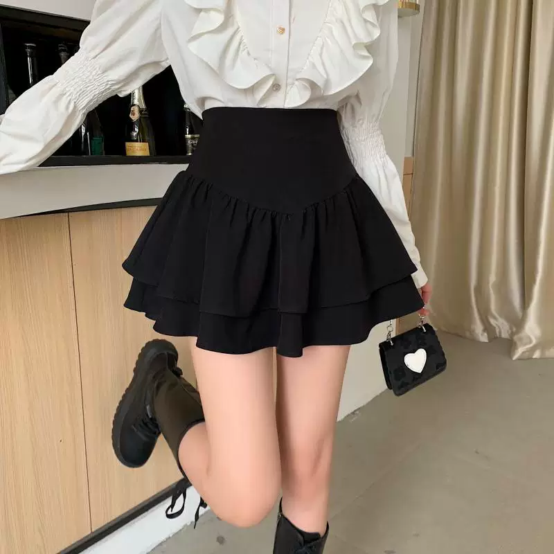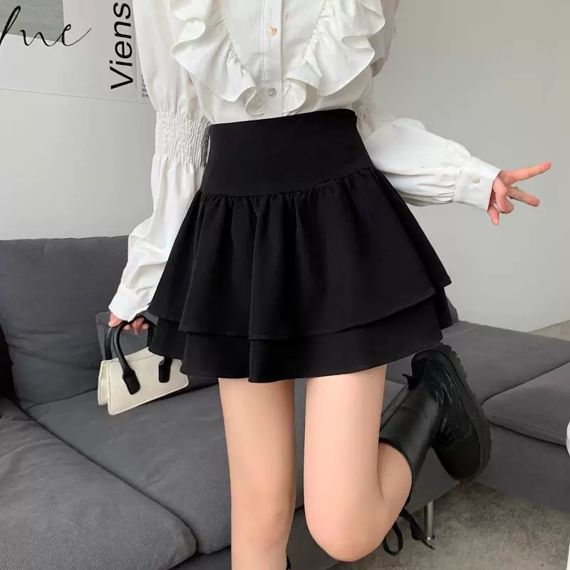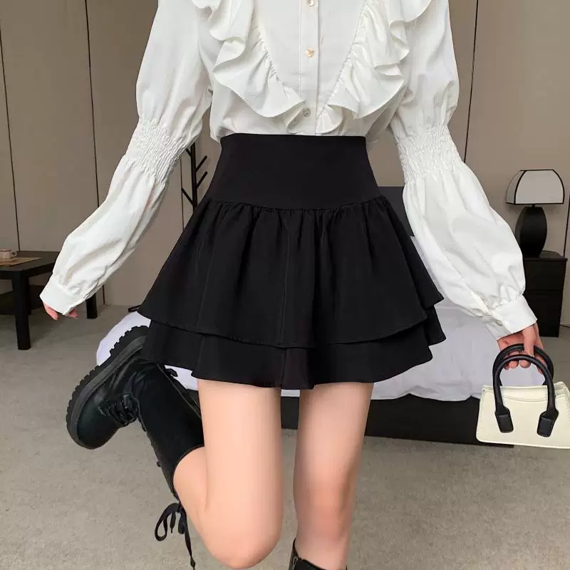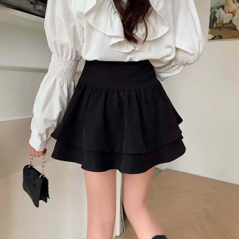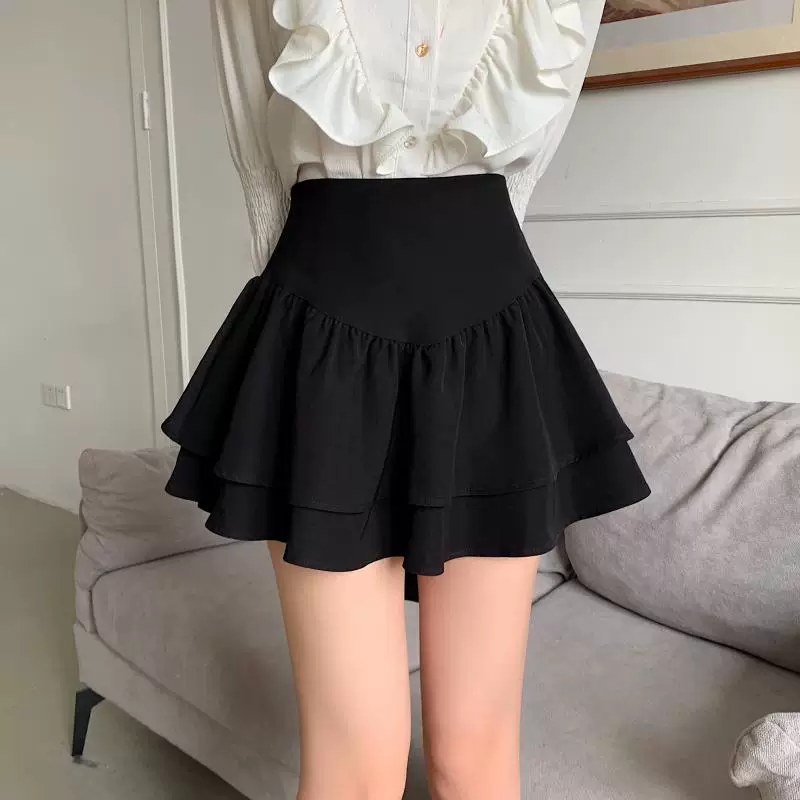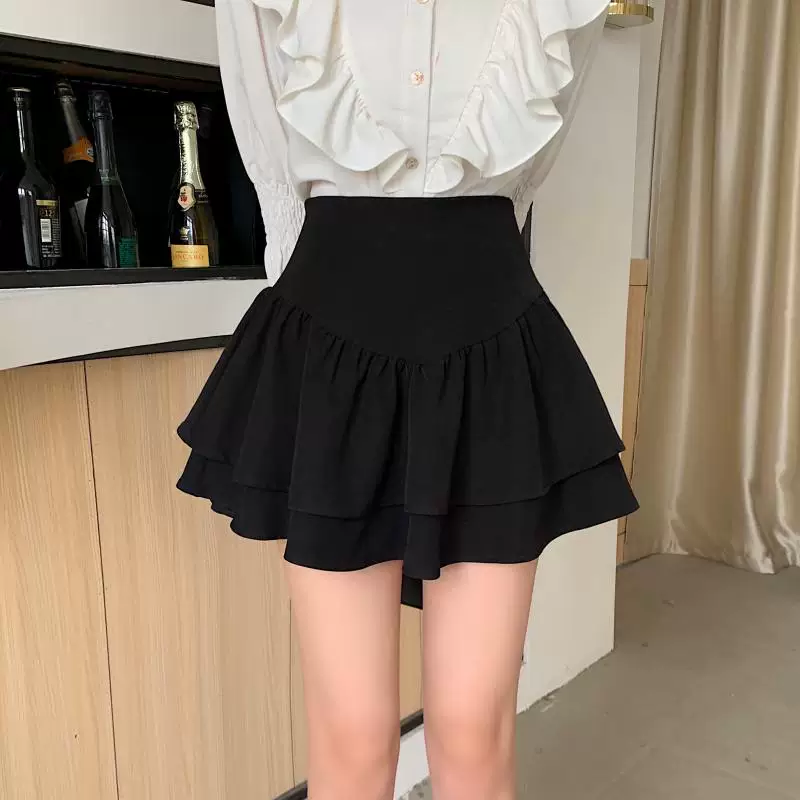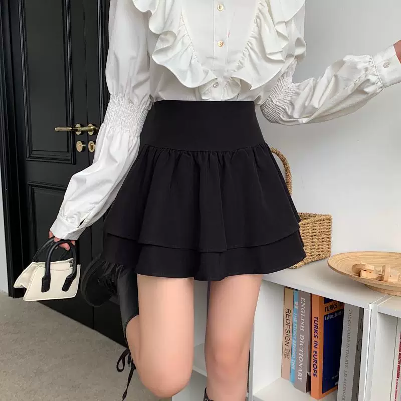 - Váy phồng kiểu Pháp cạp cao cỡ lớn dành cho nữ, váy xếp tầng xếp ly mùa xuân hè, váy ngắn chữ A chống lộ dành cho phụ nữ có đường cong.