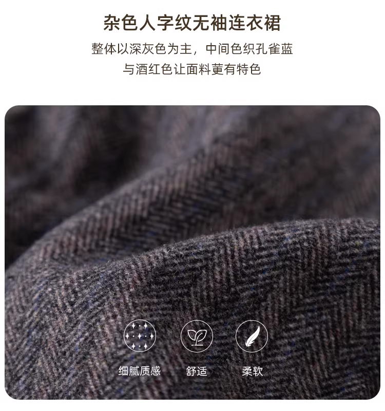 Váy polo thu đông trẻ em, váy không tay phong cách retro nghệ thuật, váy len cho bé gái lớn