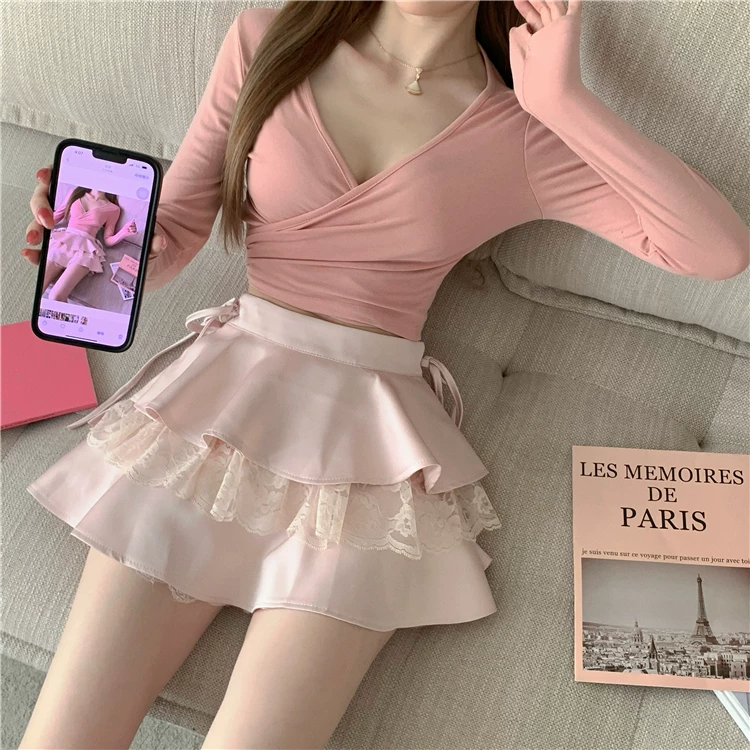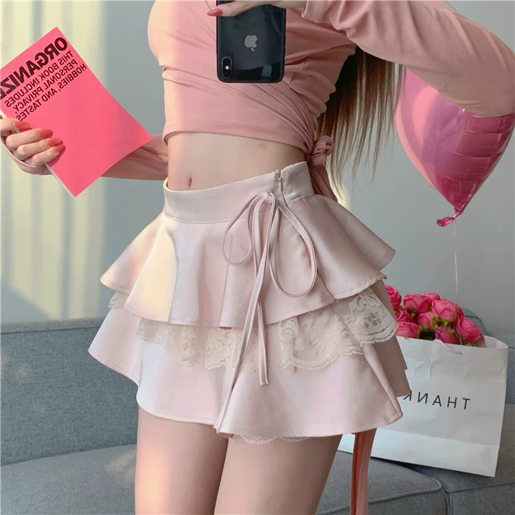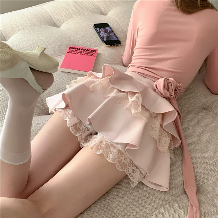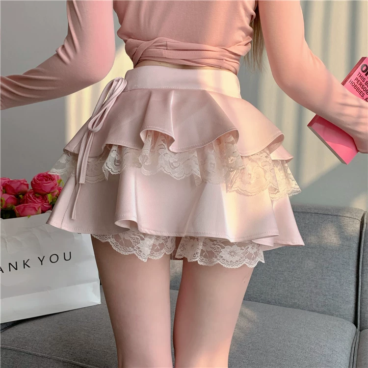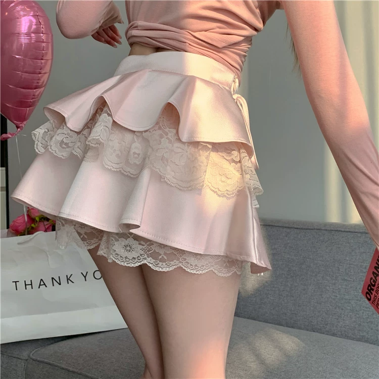 Váy ren xòe lưng cao cỡ lớn dành cho nữ, váy bánh bèo mùa hè tôn dáng với thiết kế độc đáo, váy ngắn chữ A chống lộ.